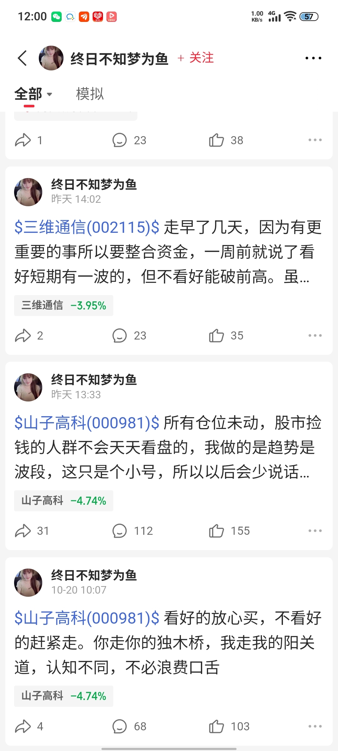 $山子高科(SZ000981)$ 笑死了这个人,靠运气赚的终究要还回去,被套了还一直发帖子忽悠人接盘