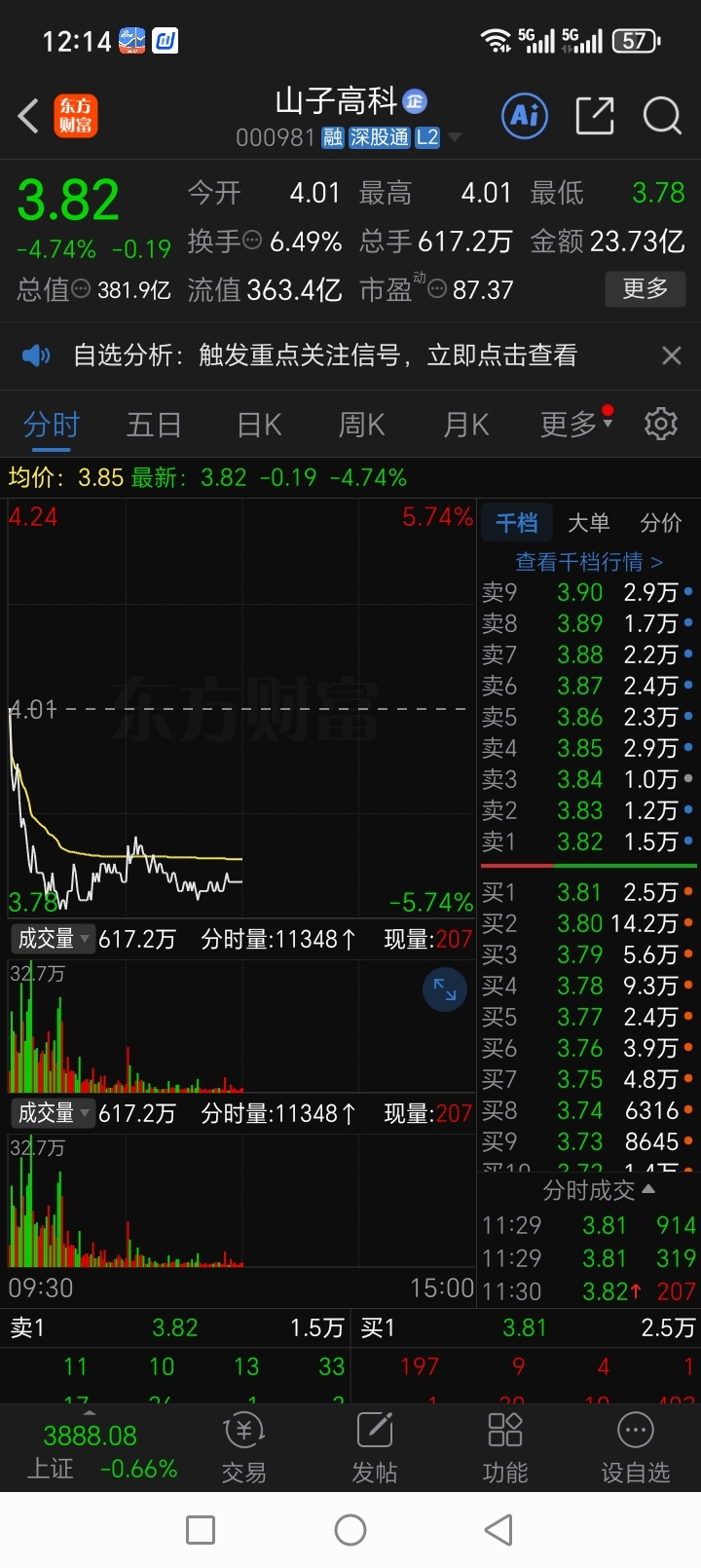 $山子高科(SZ000981)$ 听说重组成功了,下午涨停板了