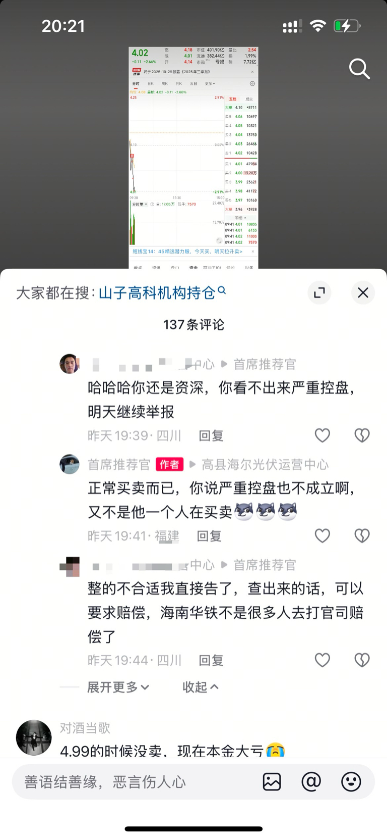 $山子高科(SZ000981)$ 再不涨 就有人起诉赔偿了,我也是第一次知道 如果举报真正控盘严重,是要赔偿的