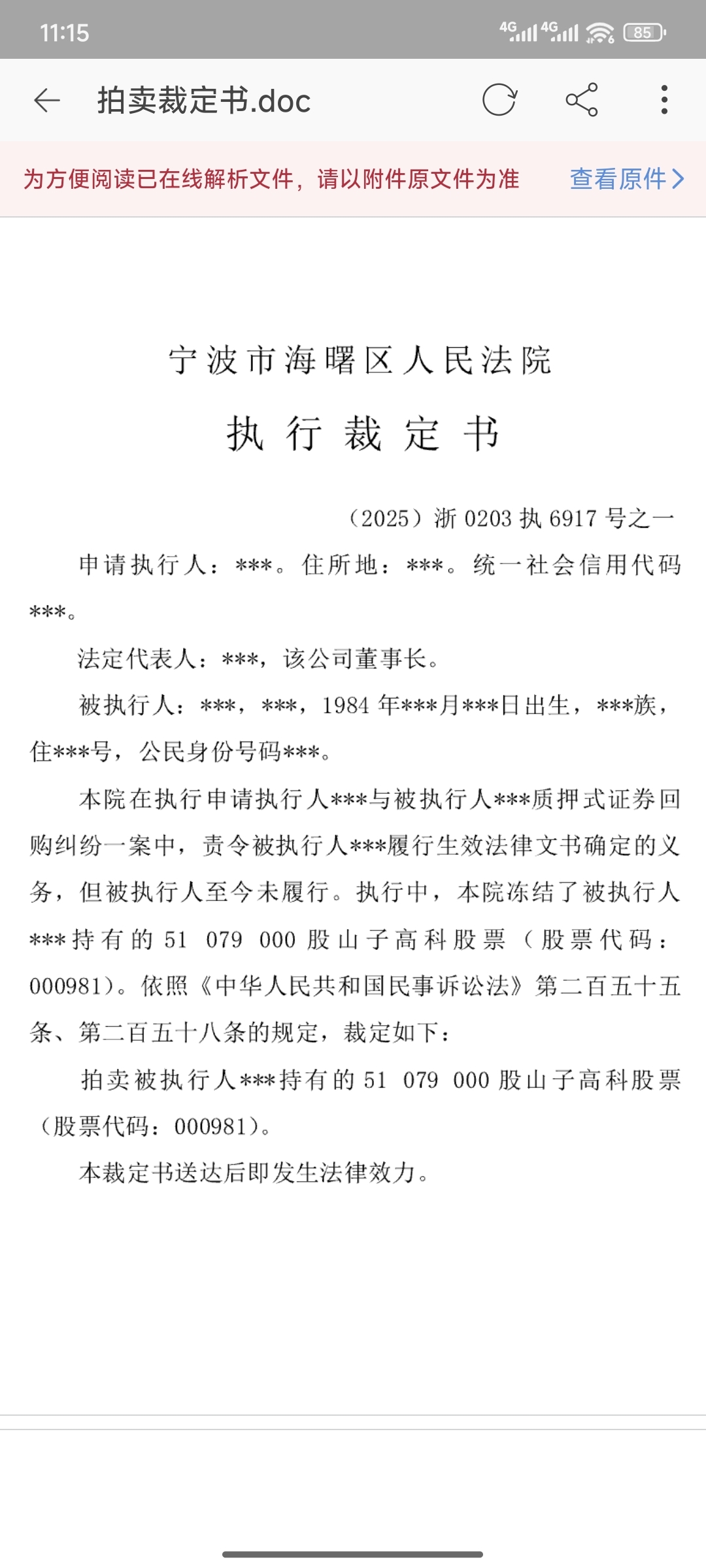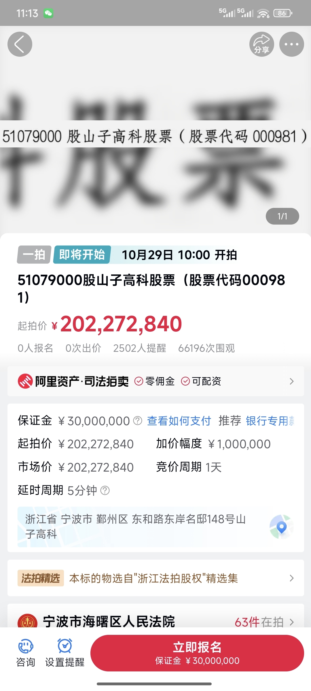 $山子高科(SZ000981)$ 这么贵,会不会流拍