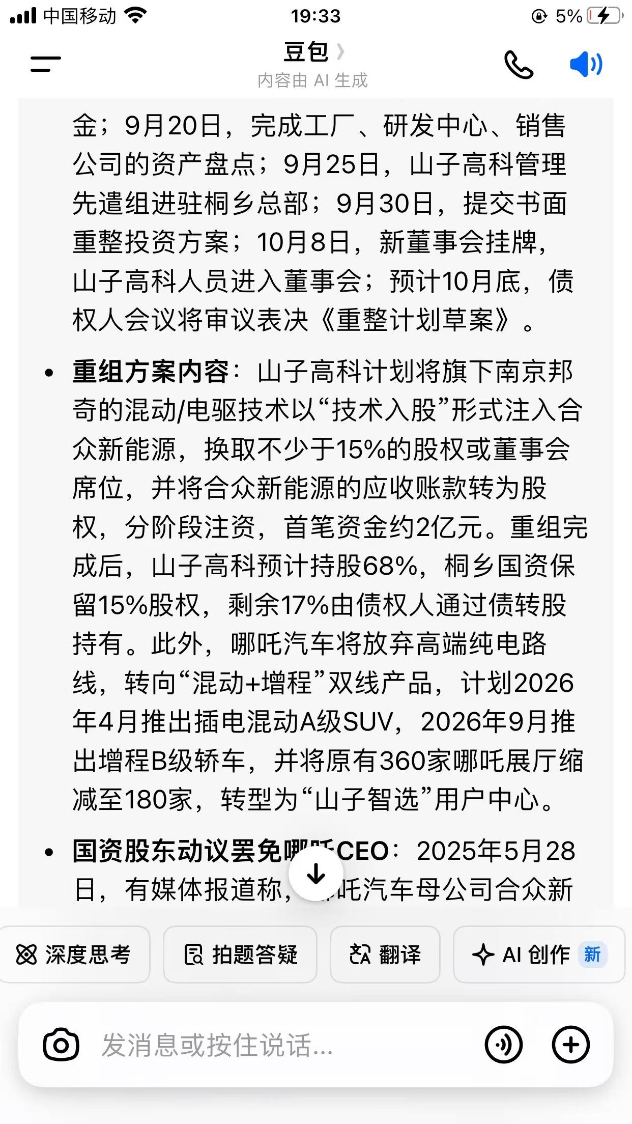 豆包给的消息,不知真假,但写的好详细“合众新能源哪吒汽车最新消息”