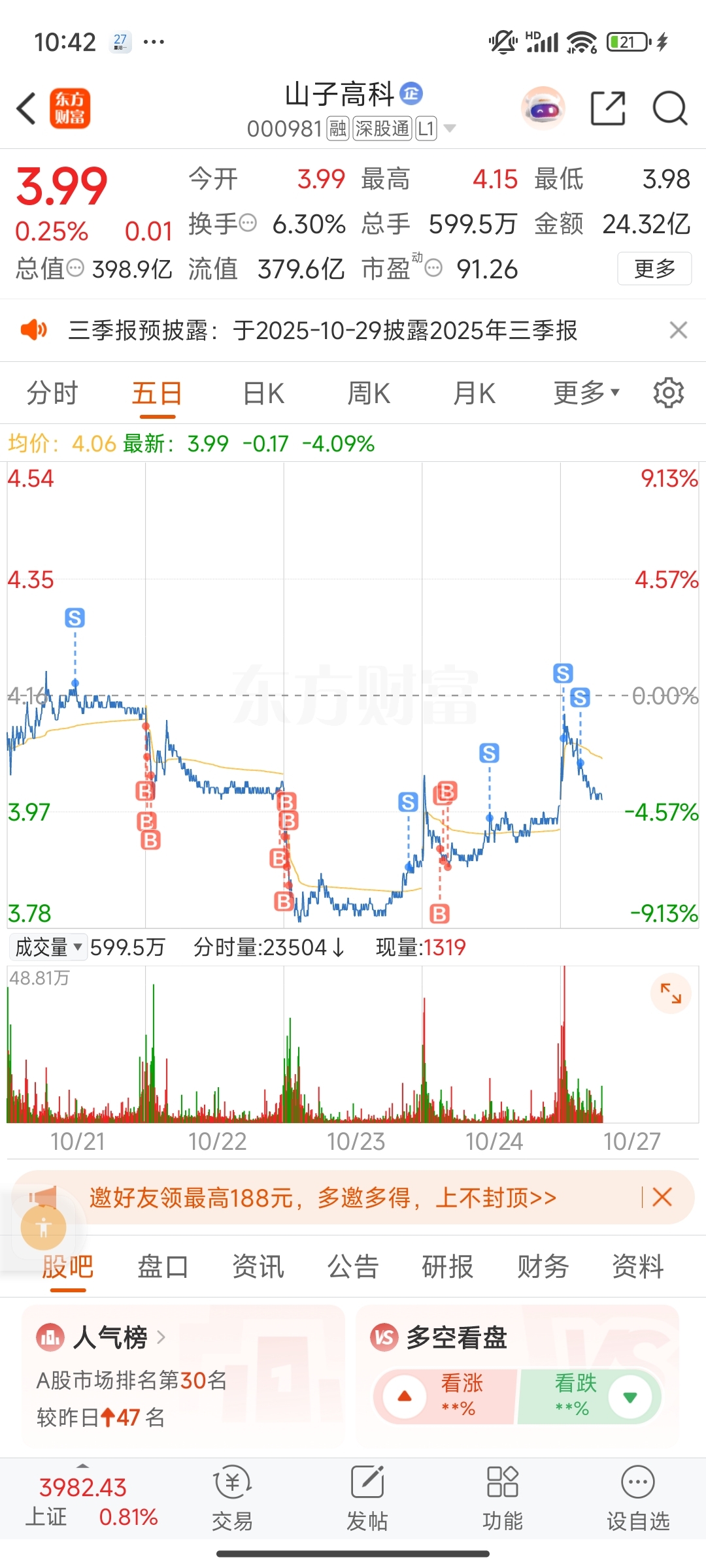 $山子高科(SZ000981)$ 拜拜您呐,赚了一个月工资,但浪费了大牛市行情
