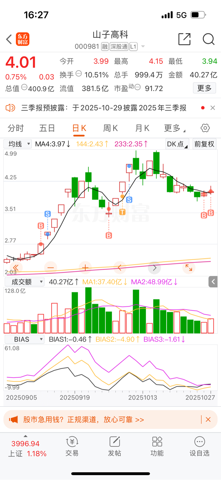 $山子高科(SZ000981)$ 玛德有点耽误行情了,要不是看你图形像中毅达也不会再回来插一脚了,也就是在赌这图形如果做成了性价比还是挺高的