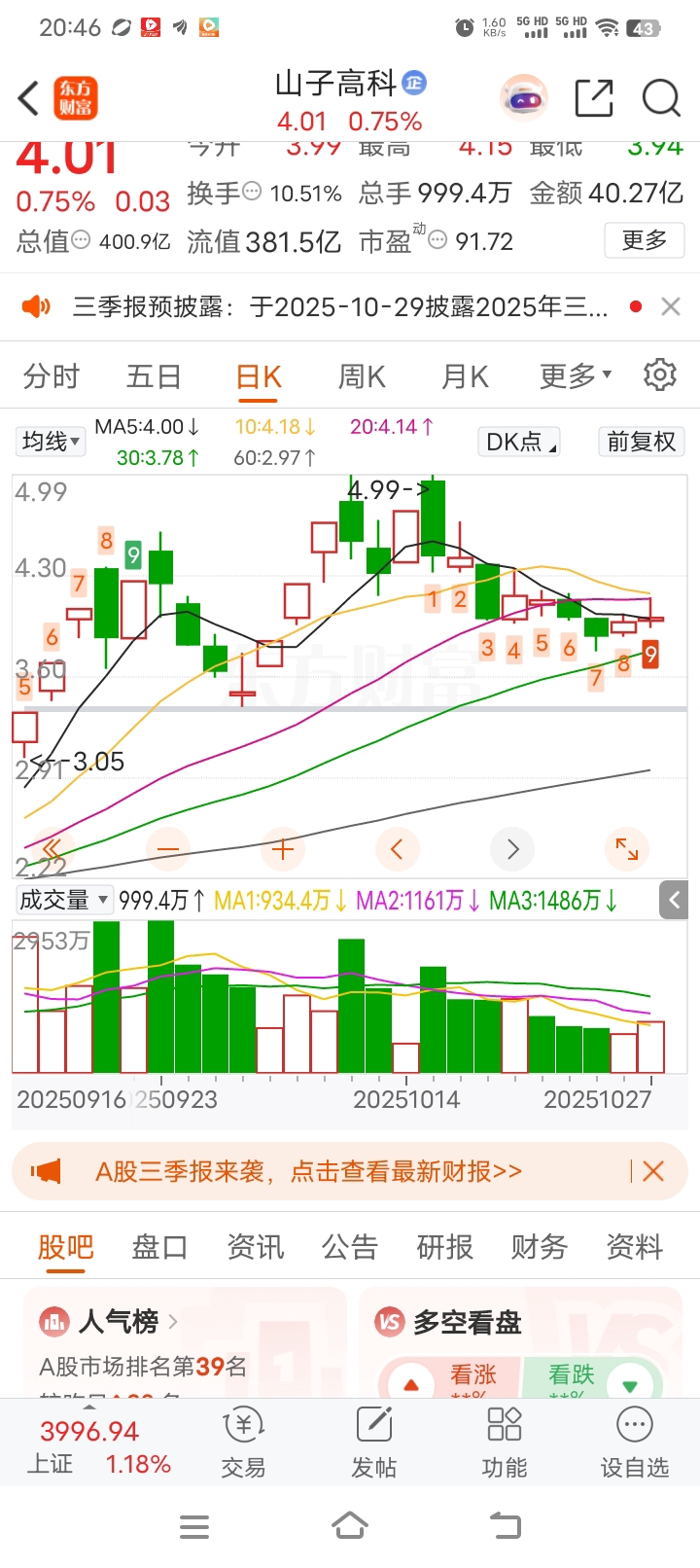 $山子高科(SZ000981)$ 今天3.99进的看到日线底9进了点