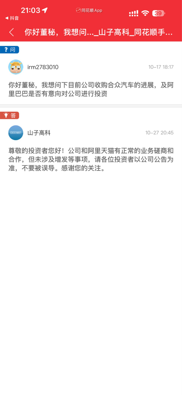 有意思董秘避重就轻,完全不搭理收购合众汽车的问题,不否认,有戏