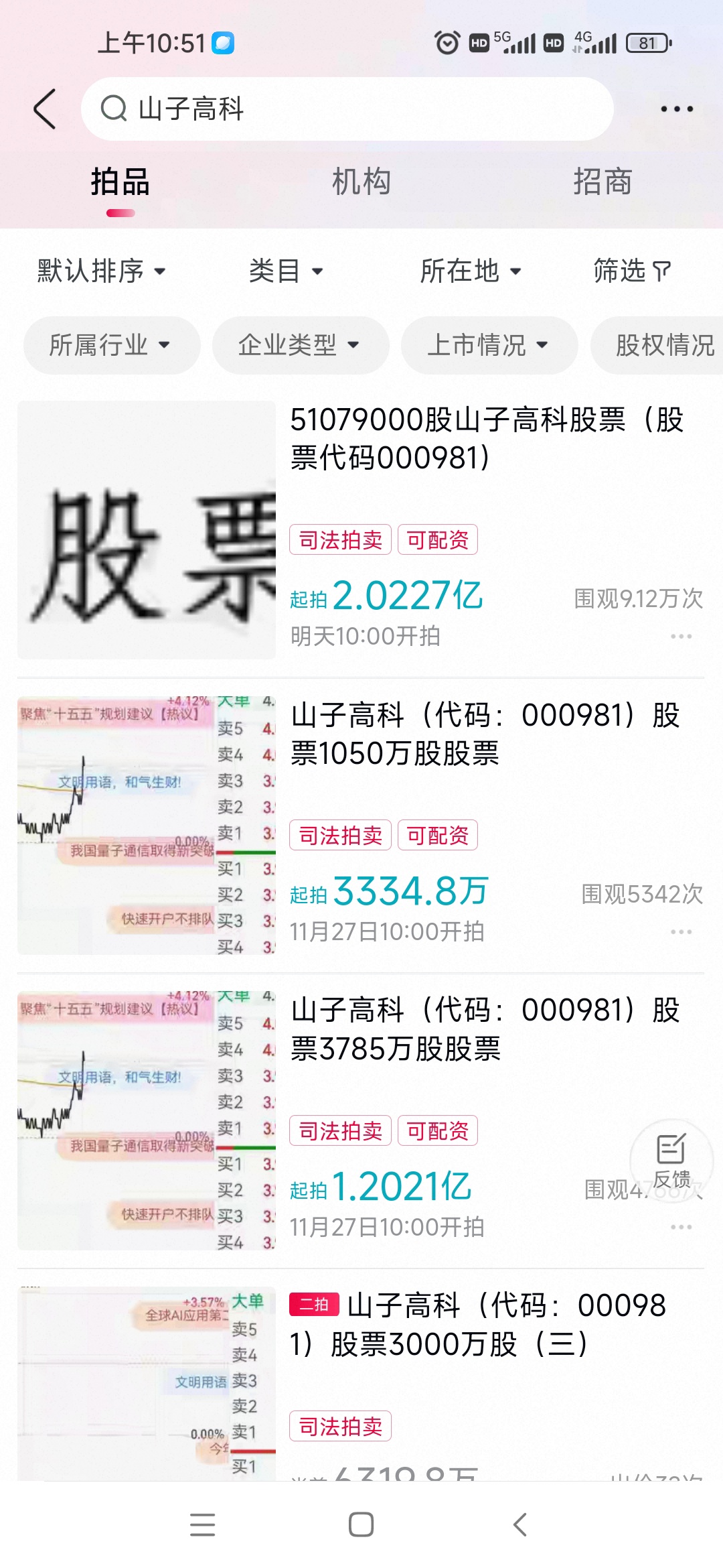 $山子高科(SZ000981)$ 这是什么,怎么好几个拍卖的