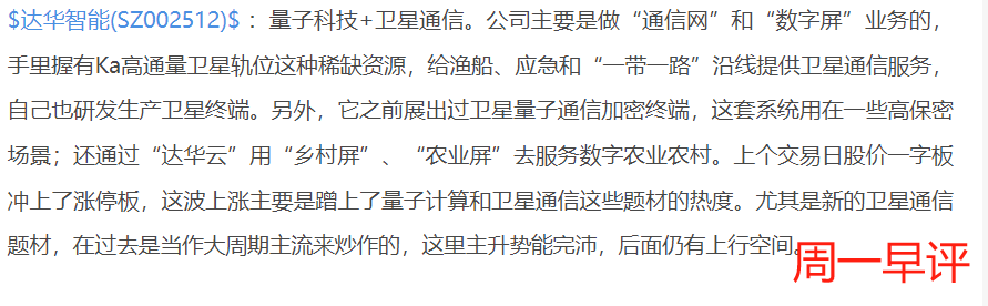 恒宝股份:智能咖行业的重要供应商,合作对象覆盖三大运营商和各大银行,同时它在量子SM产品上已经实现规模化商用,这些科技属性较强的概念让它很容易成为资金追捧的对象。上个交易日在量子科技龙头达华智能早盘封板的带动下,股价强势触及涨停板,上个交易日的涨停更像是由游资主导的短线突击。今天这个票暂时继续持有观察住,留意量子科技和稳定币题材的新催化。