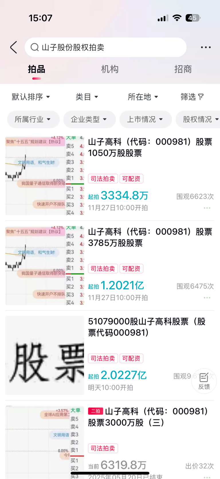 $山子高科(SZ000981)$ 怎么又有上新的拍卖了