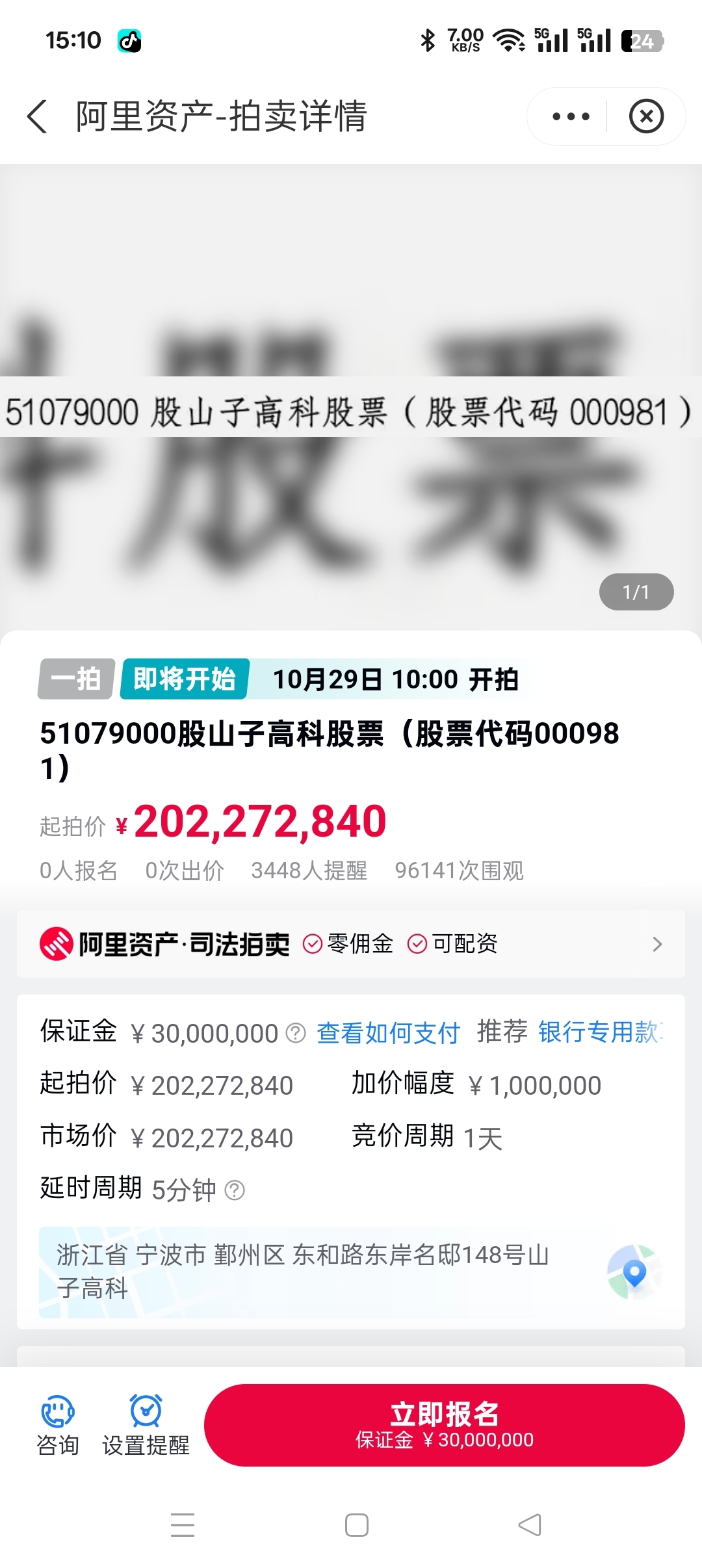$山子高科(SZ000981)$ 明天拍卖,3.96,现价比拍卖价格还低,你确定拍卖的出去,就看明天三季度报了