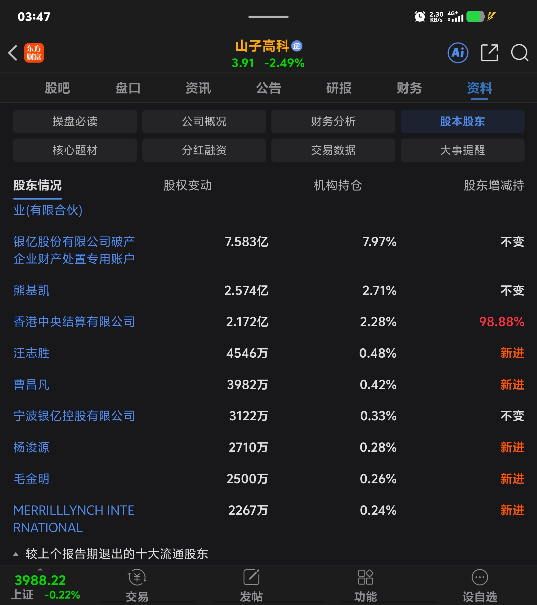 $山子高科(SZ000981)$ - 毛金明是成都人,是一位知名游资,也是备受瞩目的牛散。他白手起家,擅长连板战法,尤其擅长挖掘龙头股,轻易不出手,出手就格局到暴赚,被股民们称为“造妖大师”。他曾在赛力斯、九安医疗、剑桥科技、常山药业等多只股票上有出色的投资战绩,还提出“交易技术90%是认知,10%是个人取舍”的理念