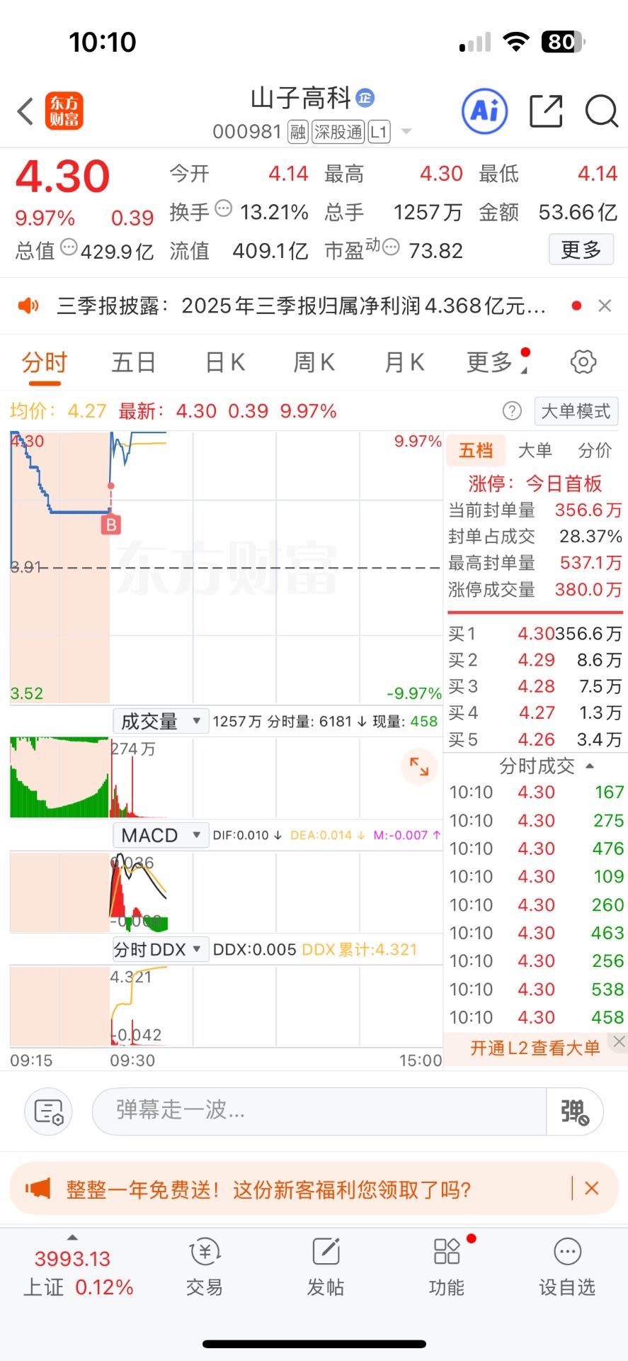 $山子高科(SZ000981)$ 恭喜追踪我文章的铁汁们~迎来今日首板开门红!关注一个马前炮博主是何等幸福啊