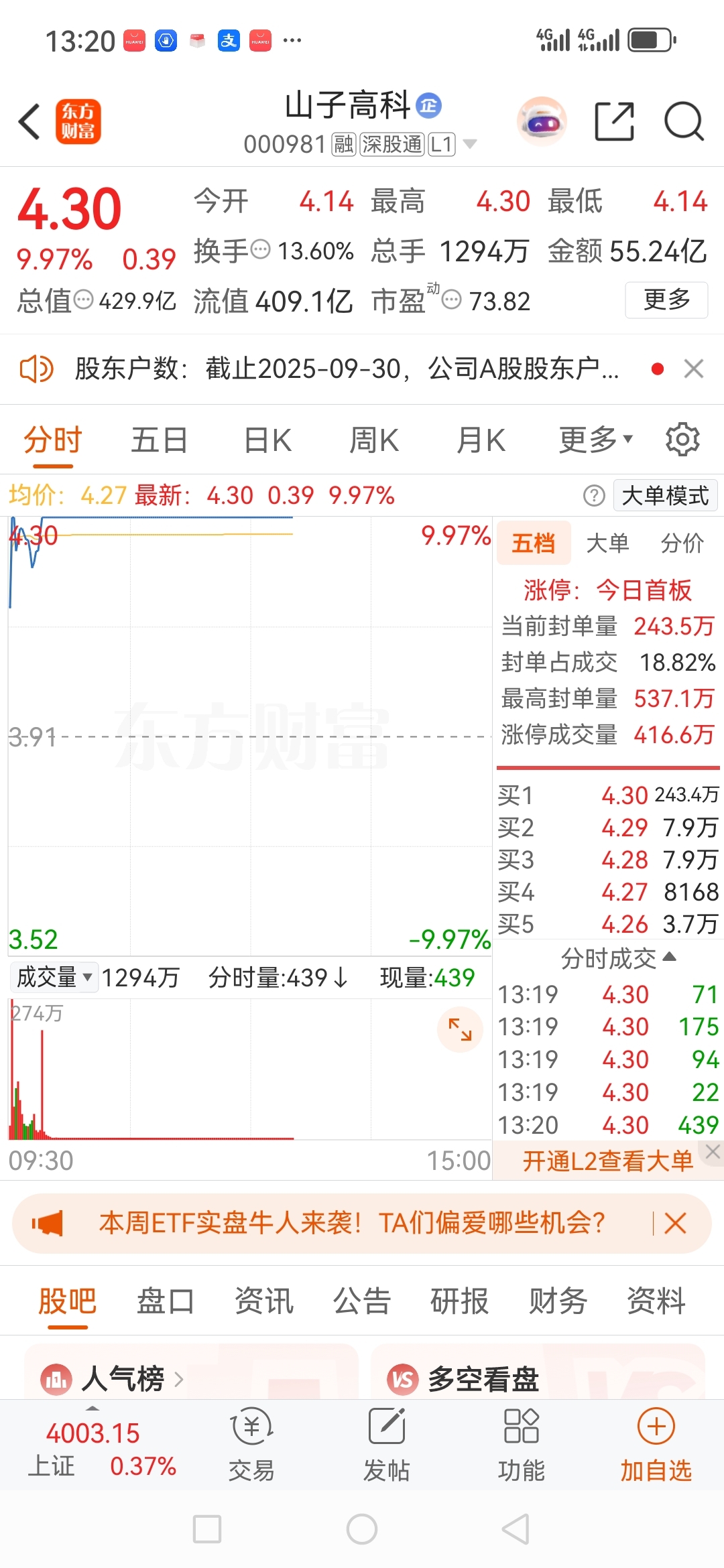 $山子高科(SZ000981)$ 明天开盘一字板涨停一字板涨停
