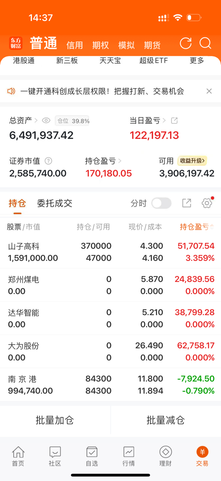 更新持仓了!山子高科今天早盘加仓干,套了这么久今天开盘主力资金进入就是最好加仓机