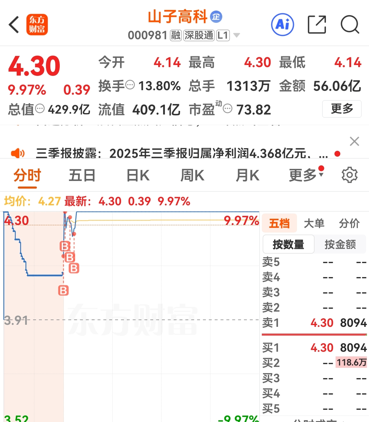 $山子高科(SZ000981)$ 公告利好+重组预期,冲破近期前高4.99应该问题不大。