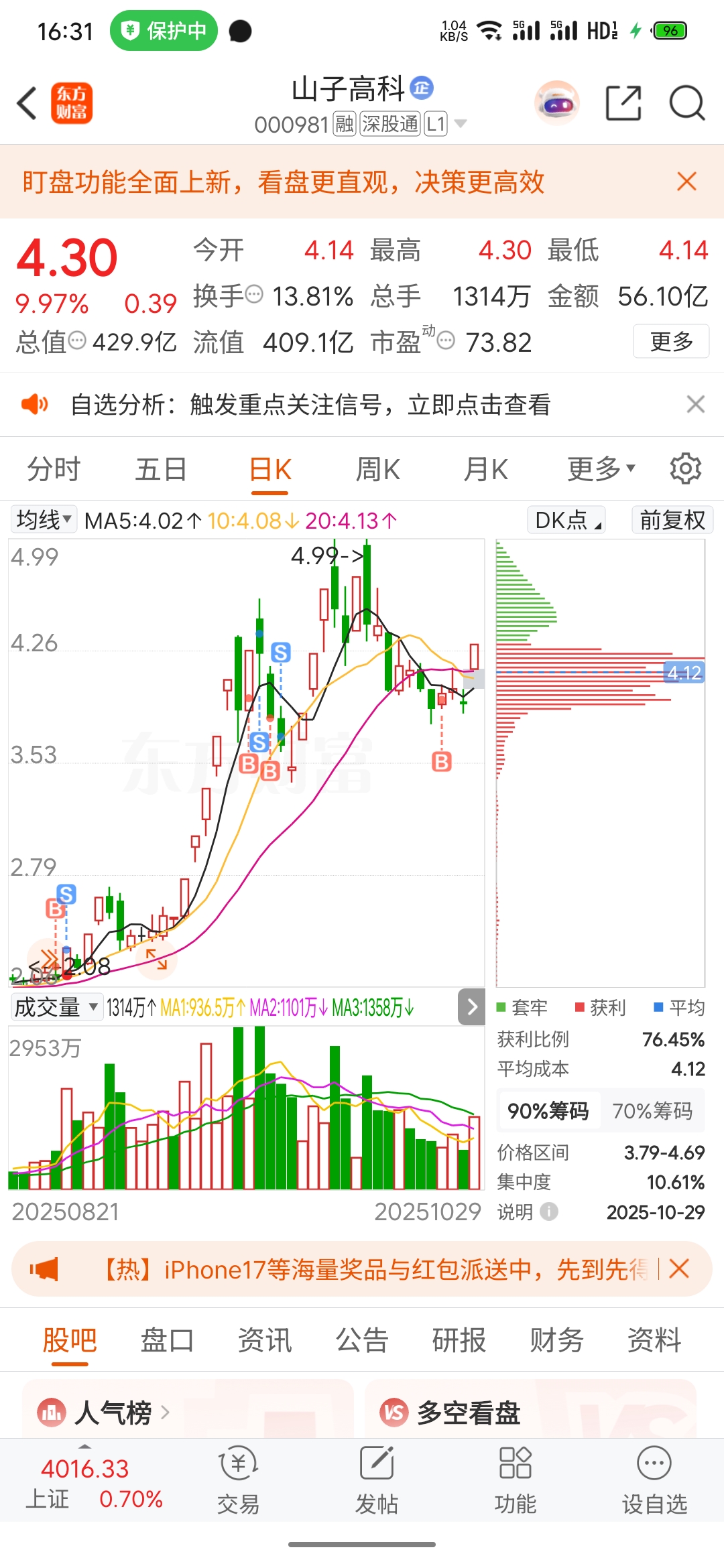也是吃到涨停了#炒股日记# $山子高科(SZ000981)$