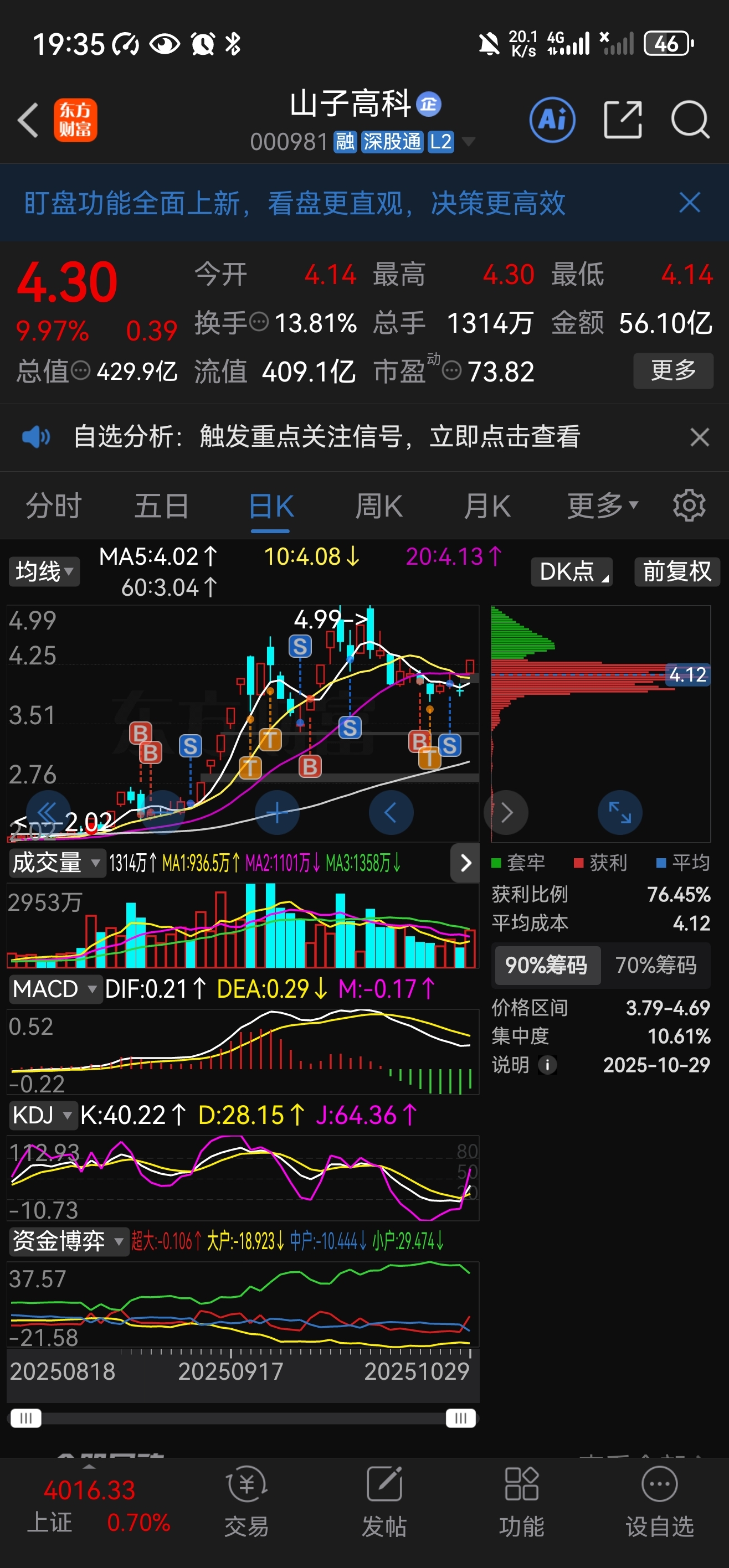 $山子高科(SZ000981)$ 又是失之交臂的一天,已经习惯了,恭喜在车上的