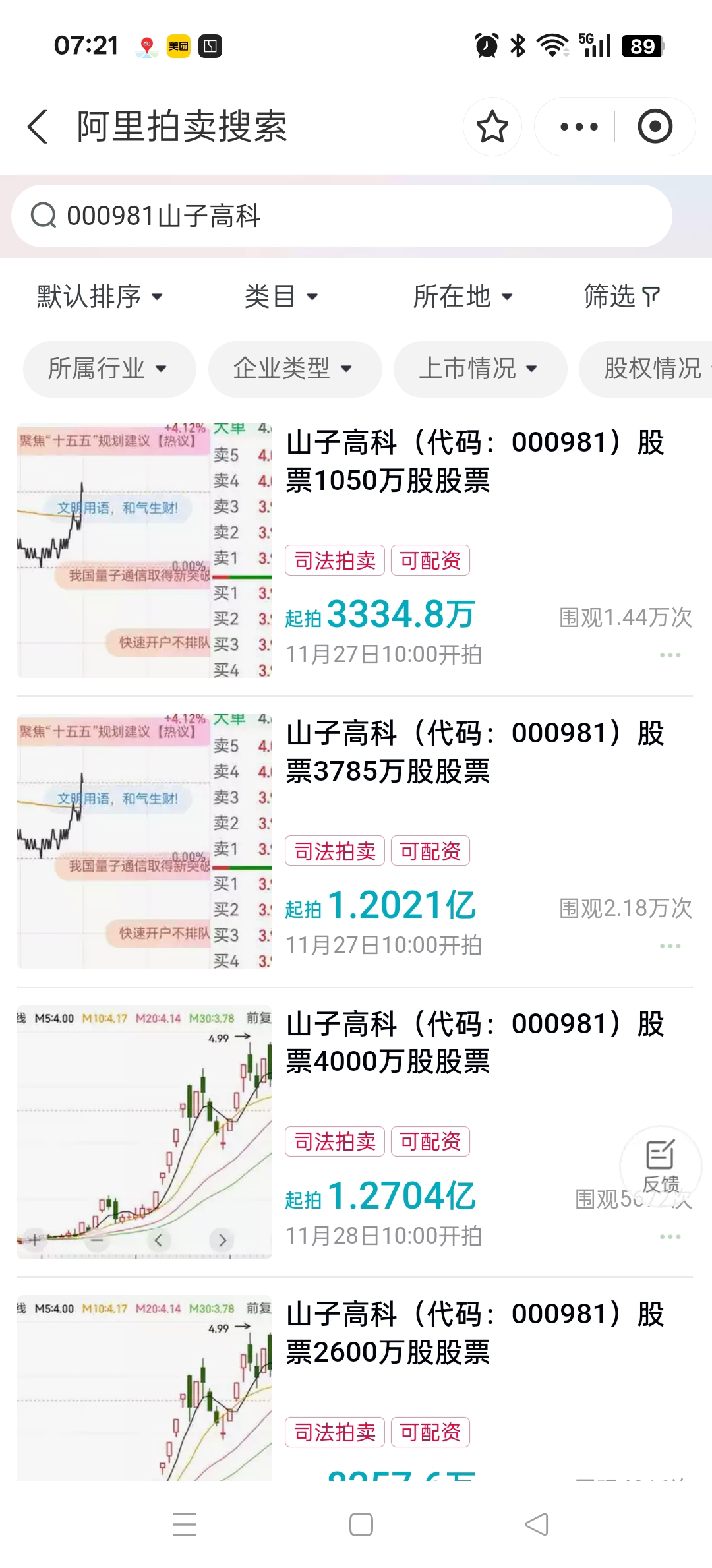 $山子高科(SZ000981)$ 这么多股票要法拍呀