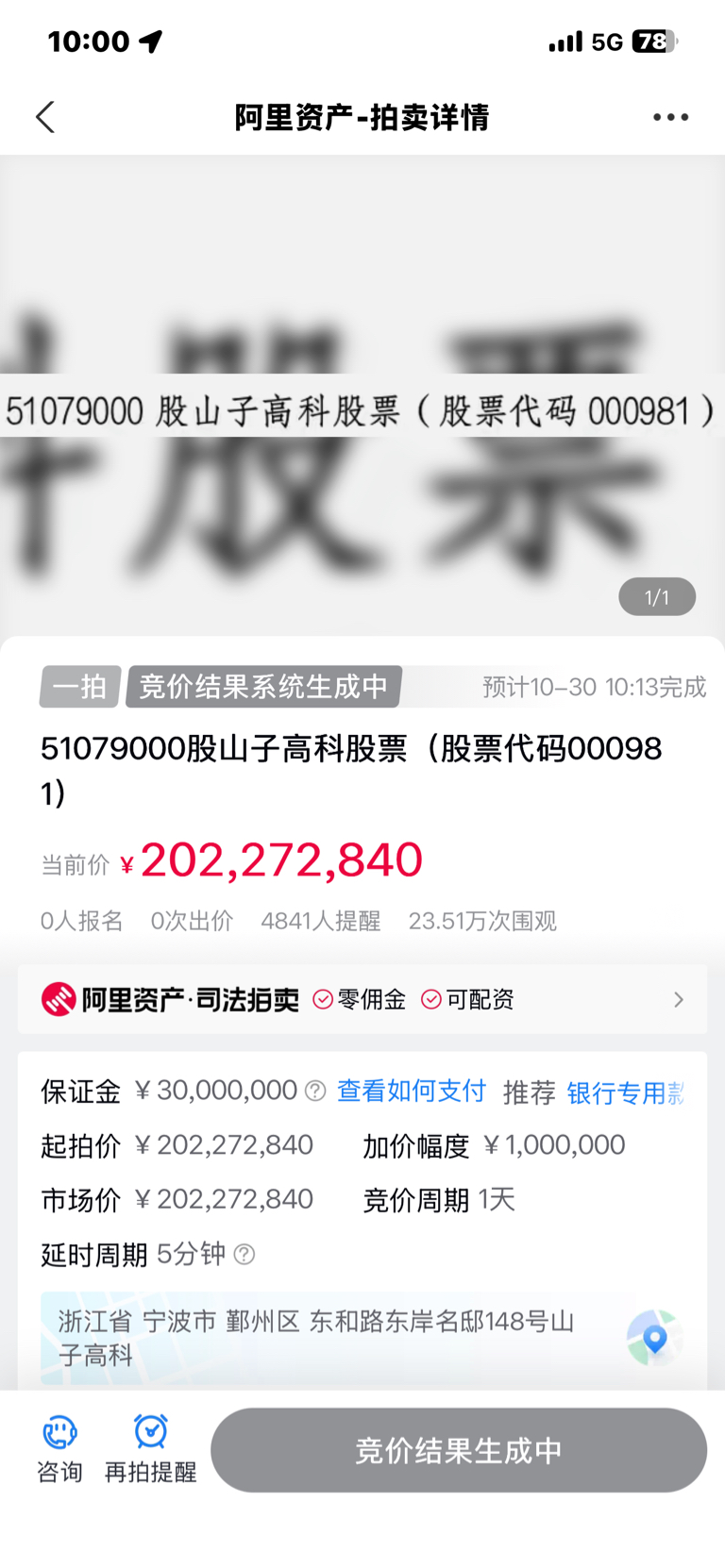 $山子高科(SZ000981)$ 流拍了,哎无语,都别造谣了