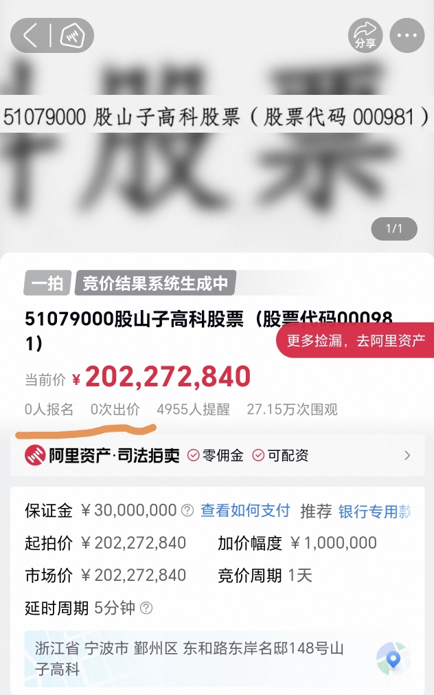 $山子高科(SZ000981)$ 没人报名,没人出价
