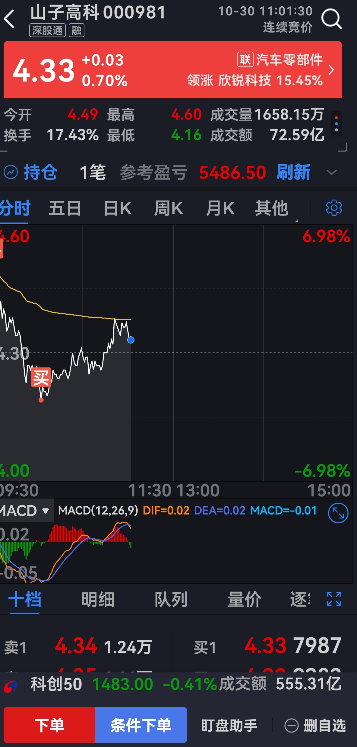 $山子高科(SZ000981)$ 哈哈这个货晃晃悠悠的就上去了
