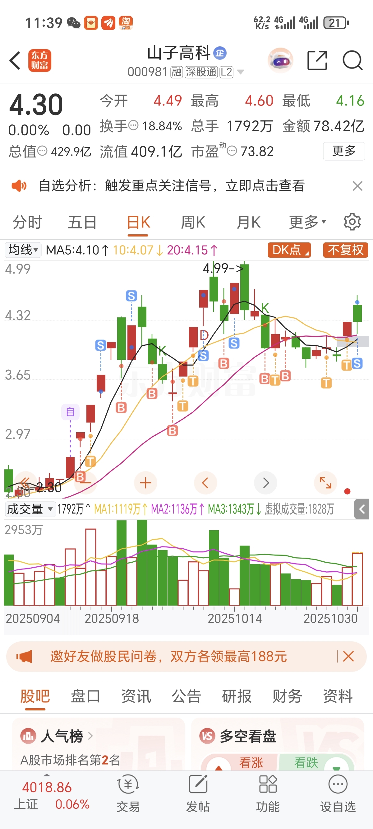 $山子高科(SZ000981)$ 兄弟们,我已经撤退了。但是我还是看好山子的,兄弟们加油