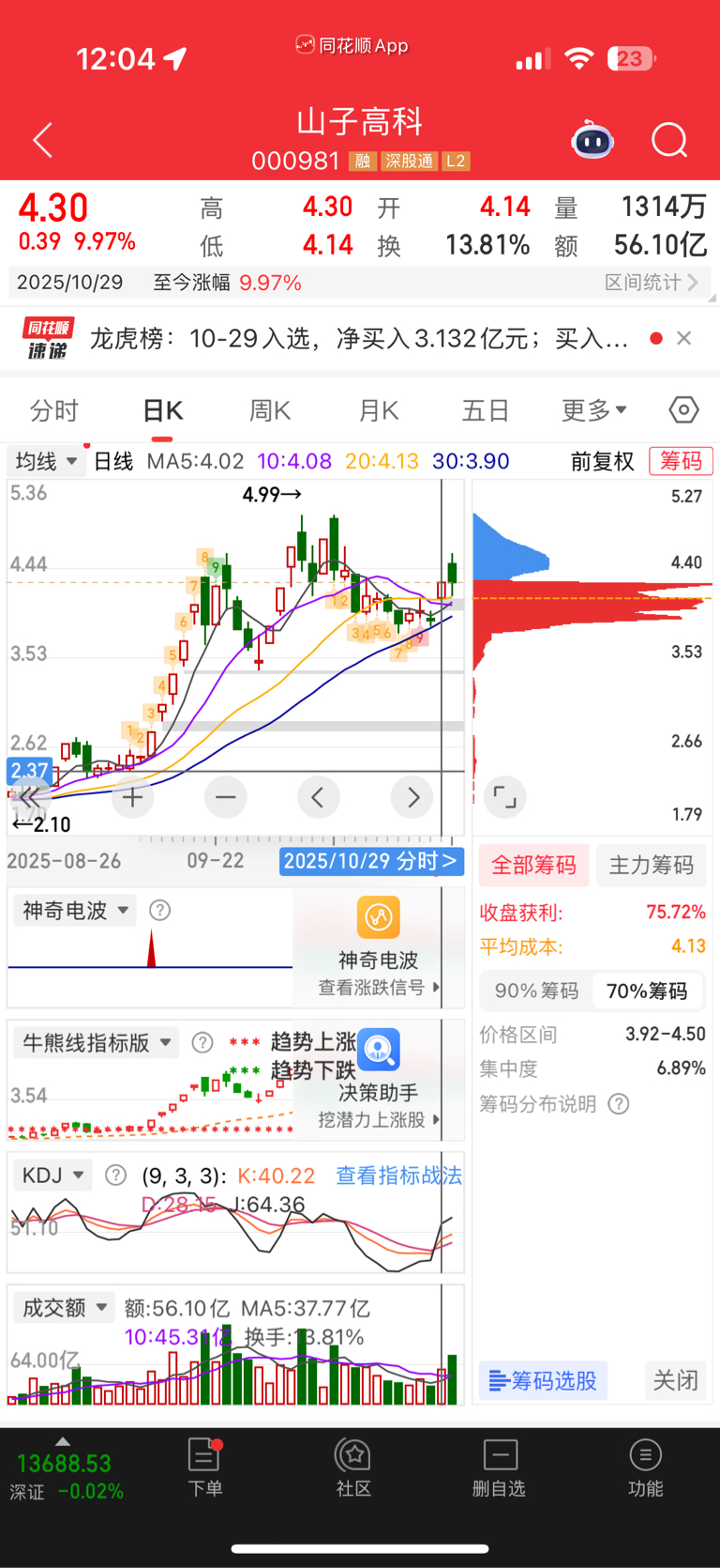 $山子高科(SZ000981)$ 昨天和今天的筹码分布。散户吃饱饱,主力笑了