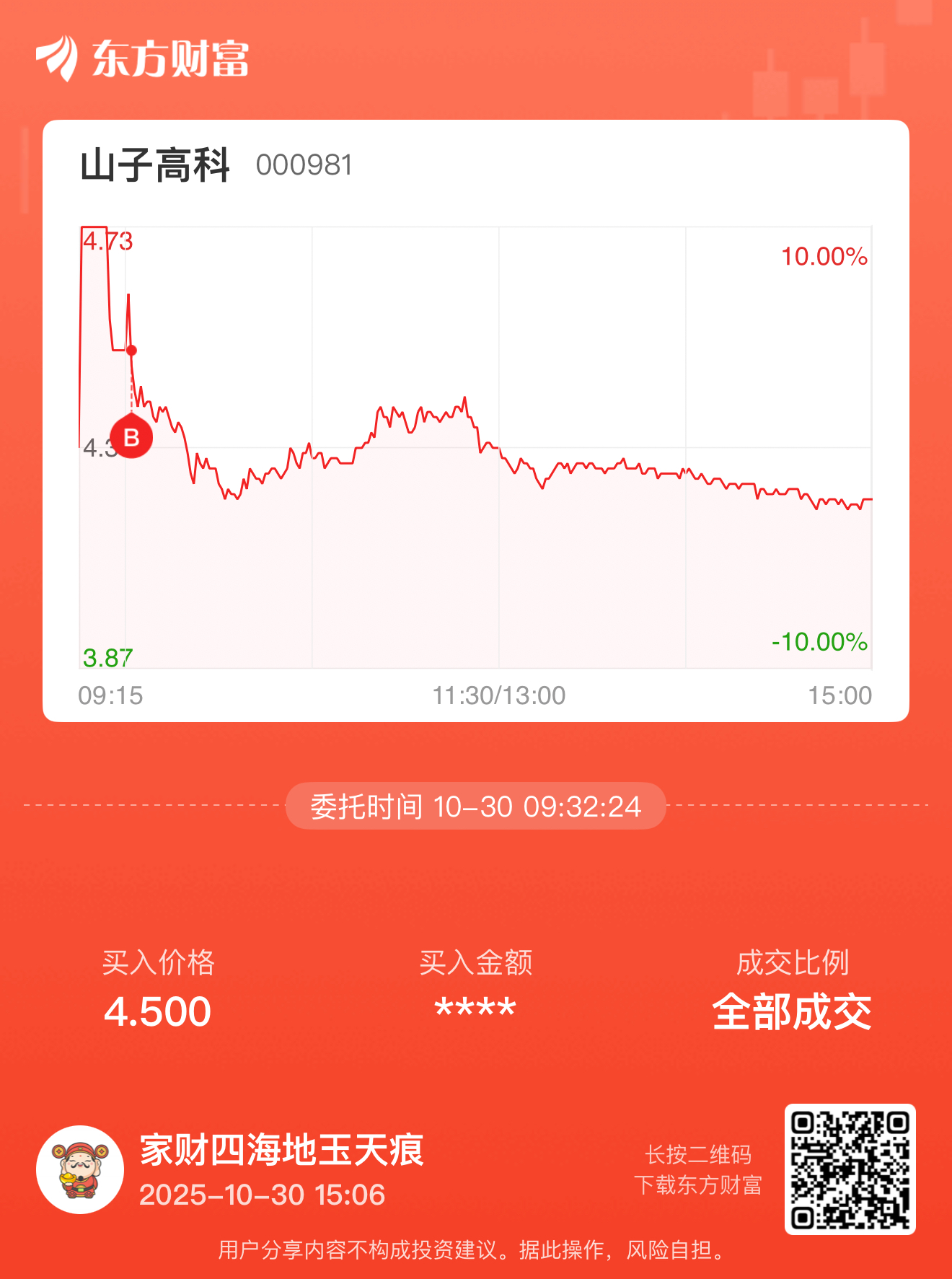 $山子高科(SZ000981)$ 今天吃大面,买了山子四次,四次全吃面