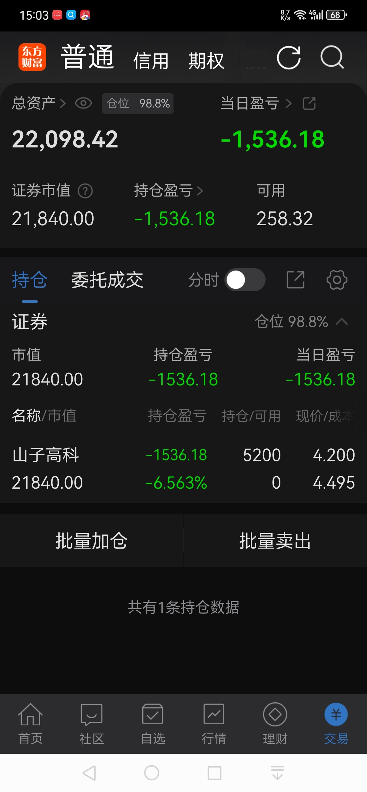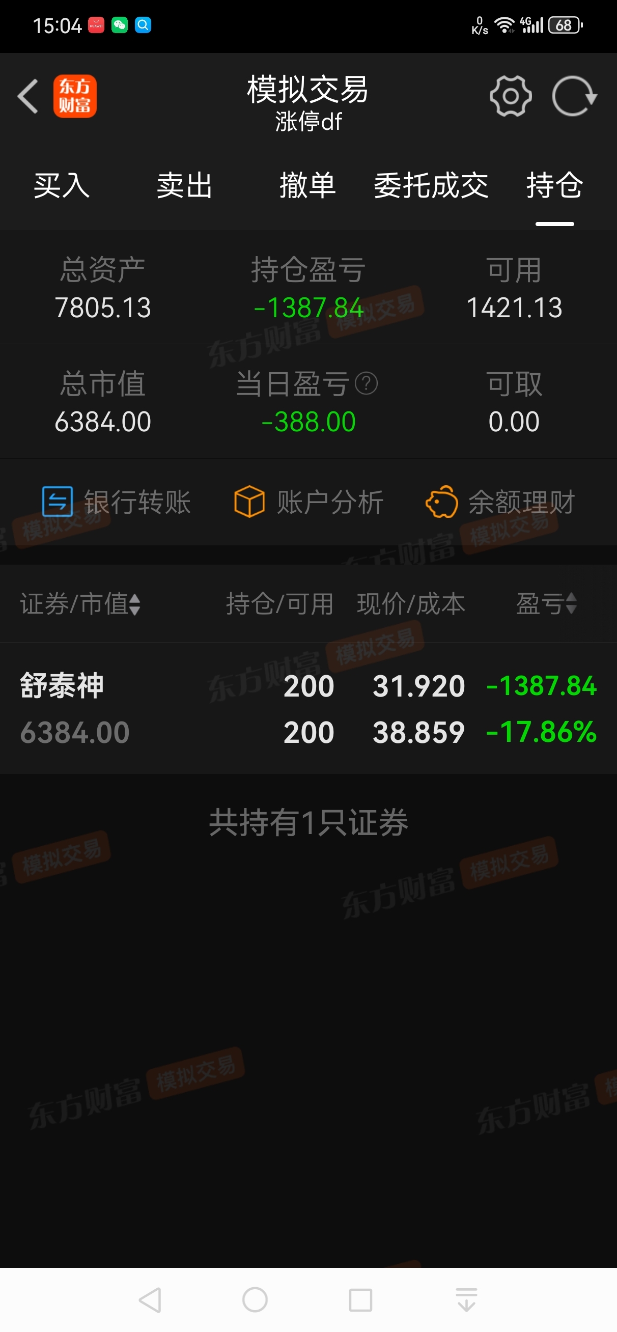 今日赢利:-1536元
