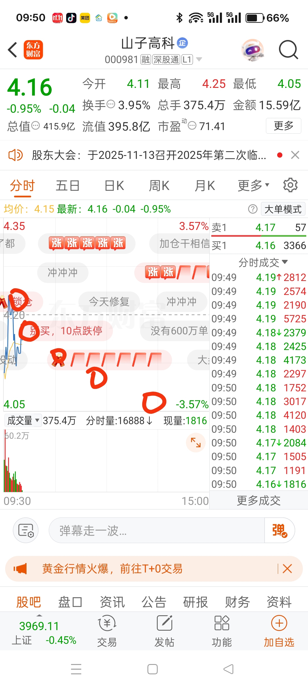 $山子高科(SZ000981)$ #炒股日记# 今天记号的都是今天的高点