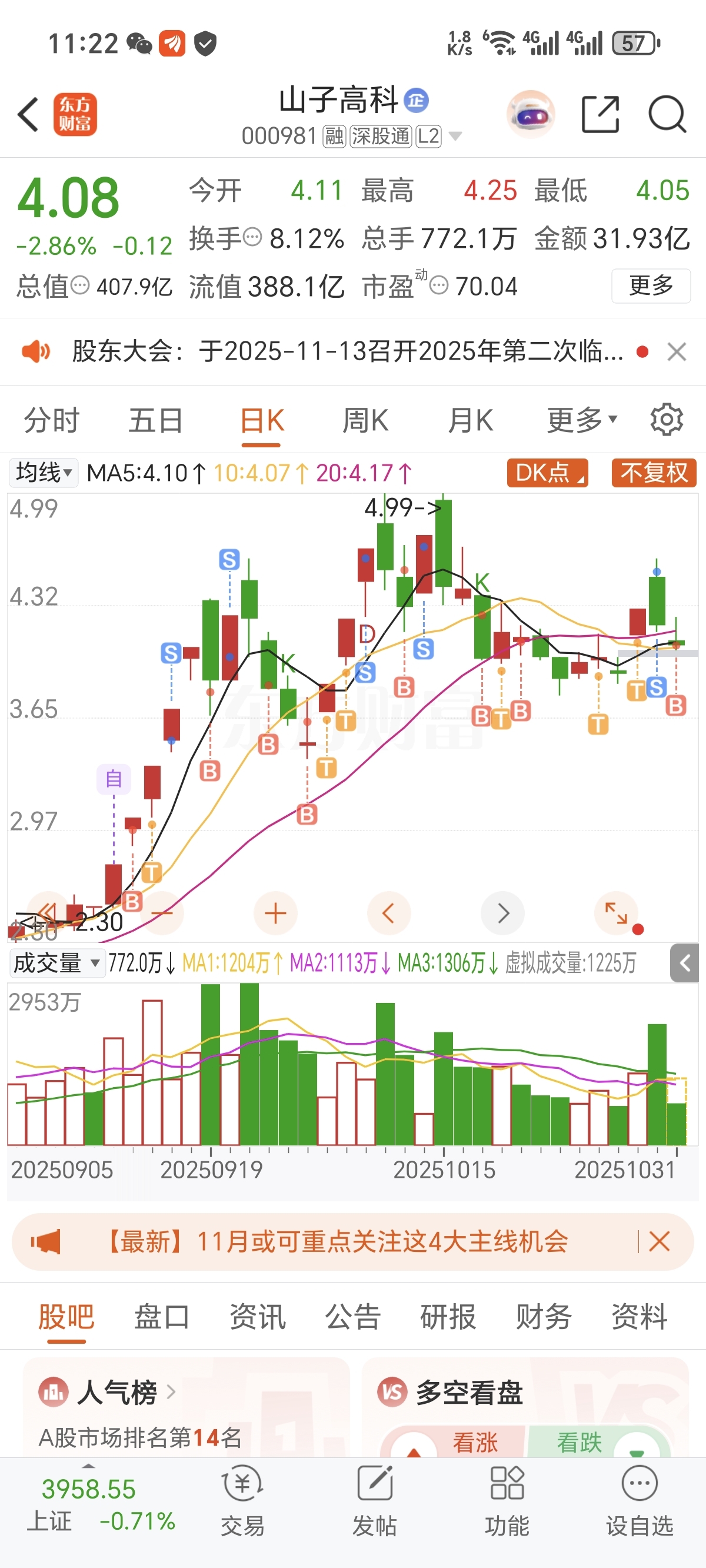 $山子高科(SZ000981)$ 兄弟们我又回来了。不给任何建议,仅供参考。