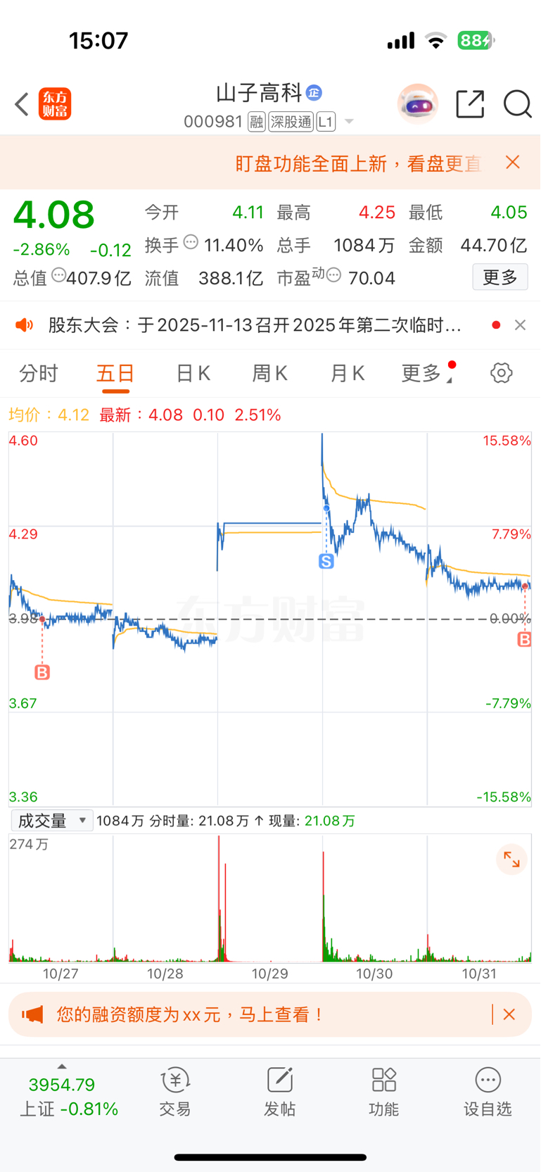 $山子高科(SZ000981)$ 建仓,下周低于4块3层仓,低于3.8全仓进入,下周我们不见不散