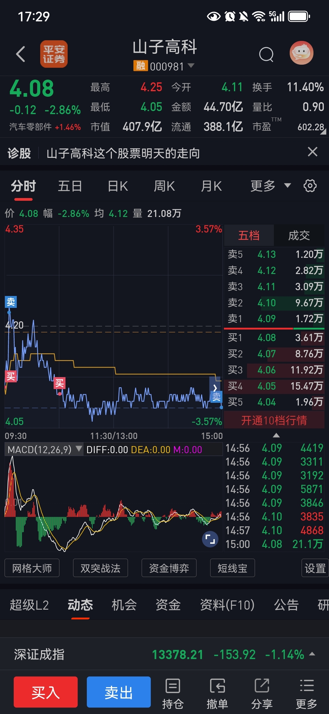 $山子高科(SZ000981)$  不破4块就T一下,破了四块就清仓,第二手4.1买没拉起来败笔