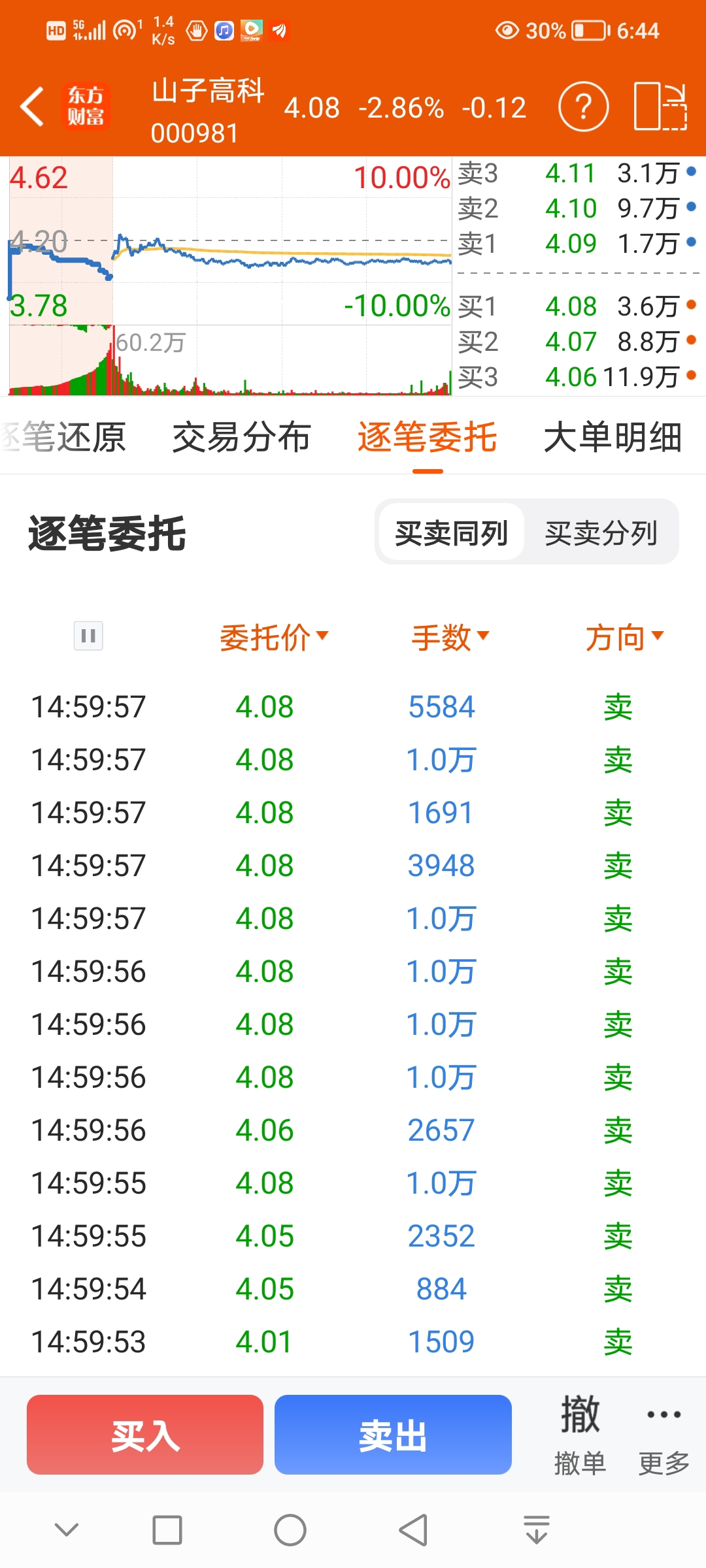 $山子高科(SZ000981)$  硬生生在几秒中砸到4.08