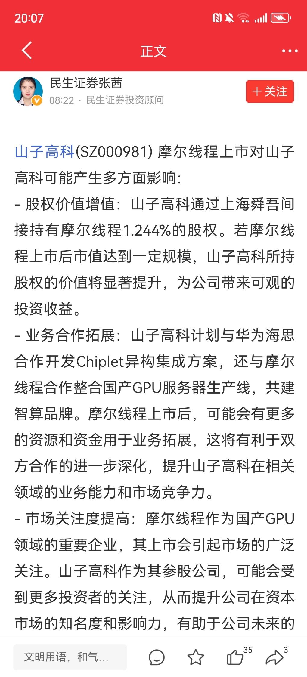 $山子高科(SZ000981)$  现在这世道也不知道那句是真,那句是假
