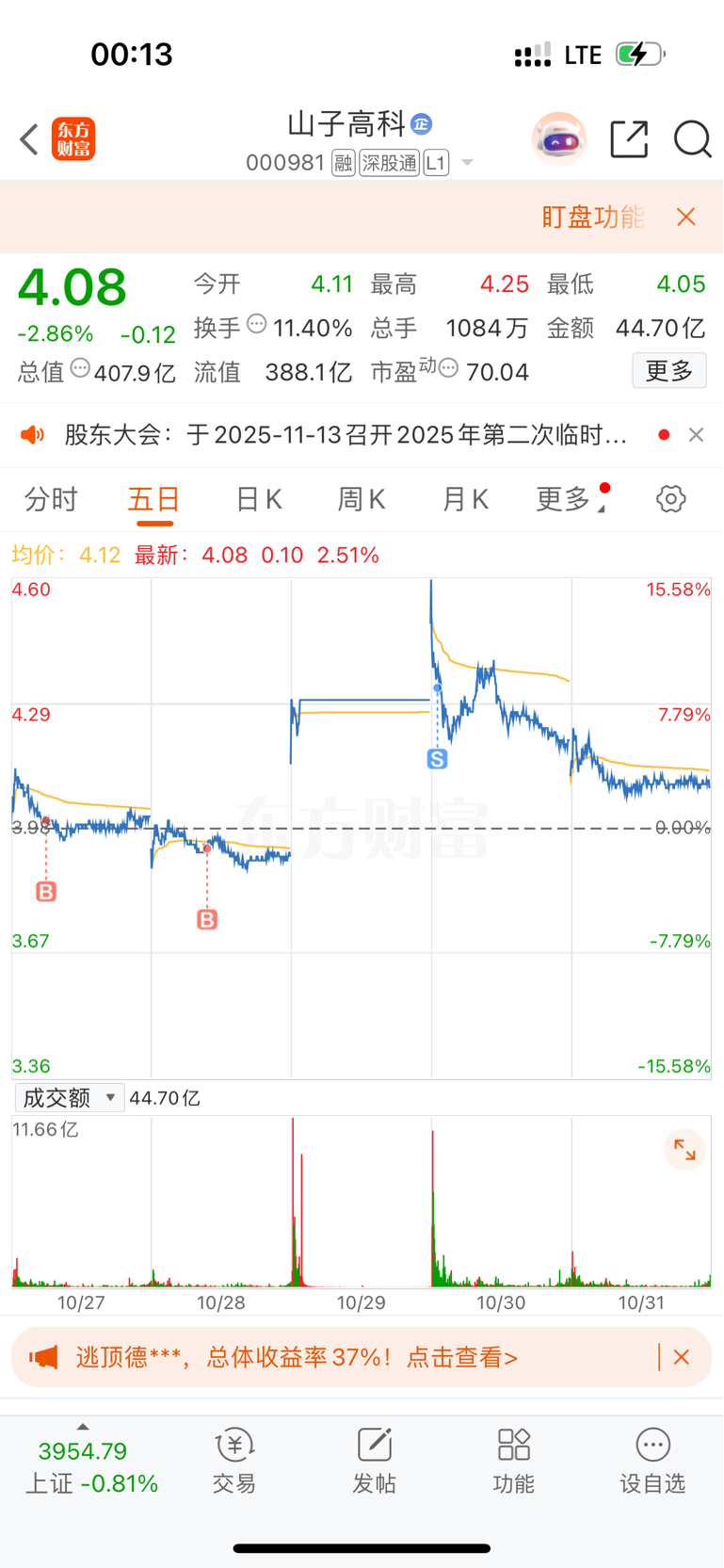$山子高科(SZ000981)$ 今天挂4块买入,没有买到下周在看看