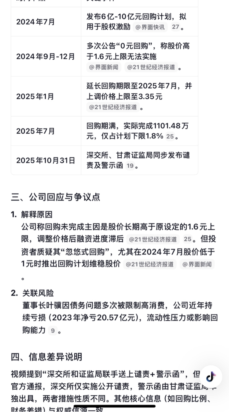 发布的回购是24年,后来股价拉高了公司回购不起了,深交所发布谴责,甘肃证监局发布