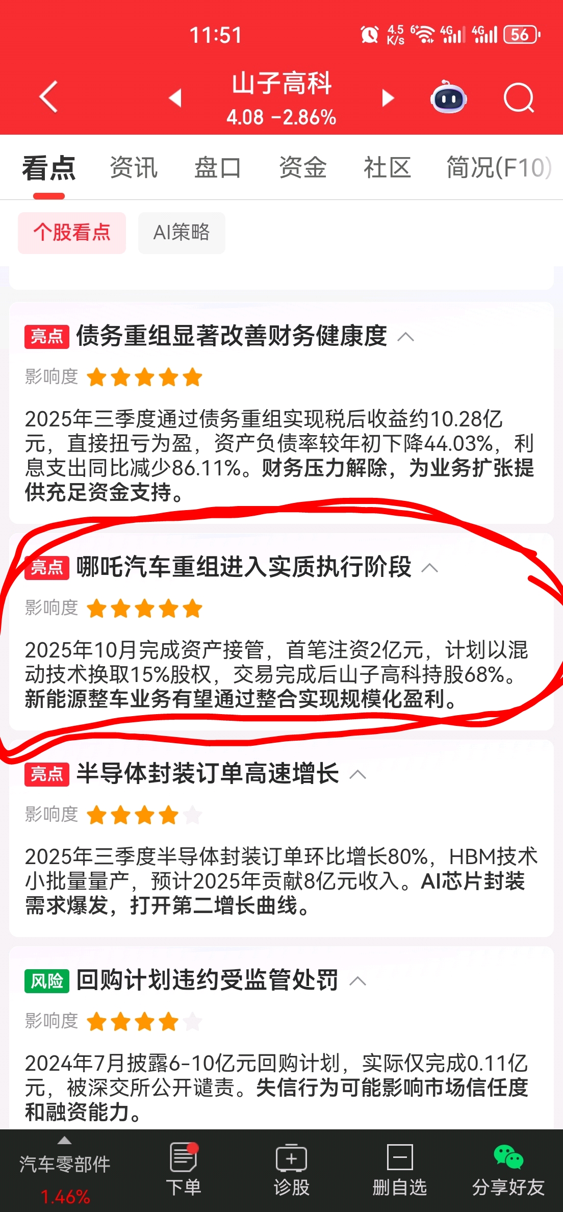 $山子高科(SZ000981)$ 不知真假,同花顺亮点。
