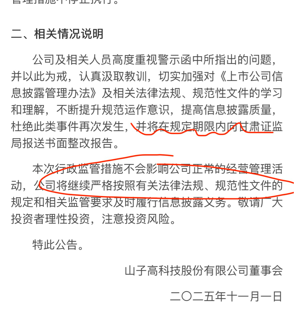 $山子高科(SZ000981)$ 你们都不看公告吗?,公司说了不会影响正常经营活动,还有并在规定期限内向证件报送书面整改,整改回购,这不是大利好吗?咋想的利空?请问