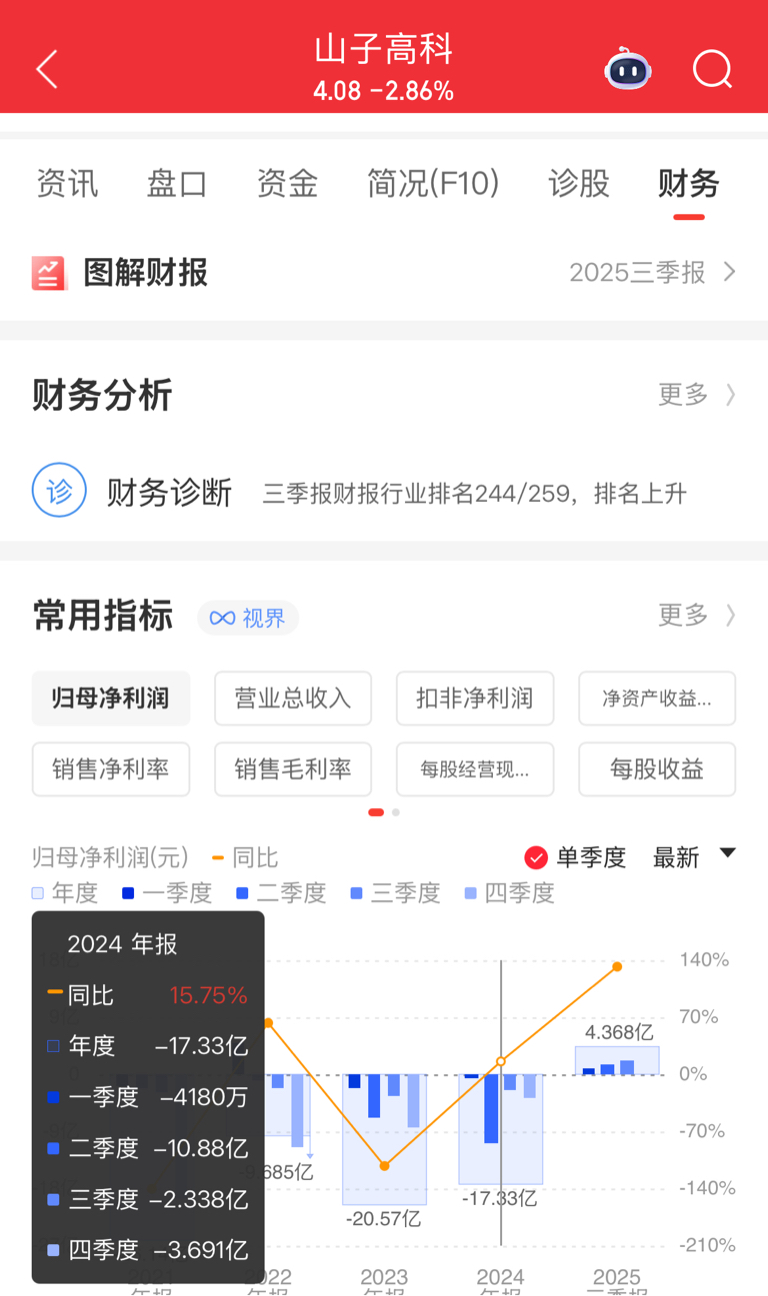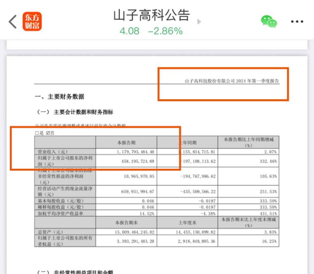 2024年一季度显示利润为4个多亿,后来更正后显示利润为负的4000多万,也就是