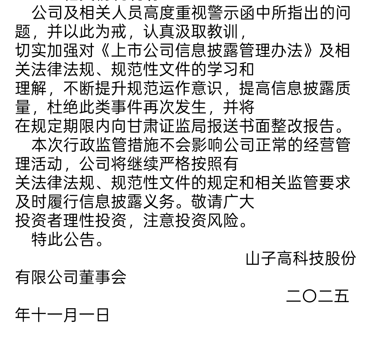 这是山子高科的回复。实际上回购才是关键!山子的承诺的确没有兑现,挨了批评。公函提