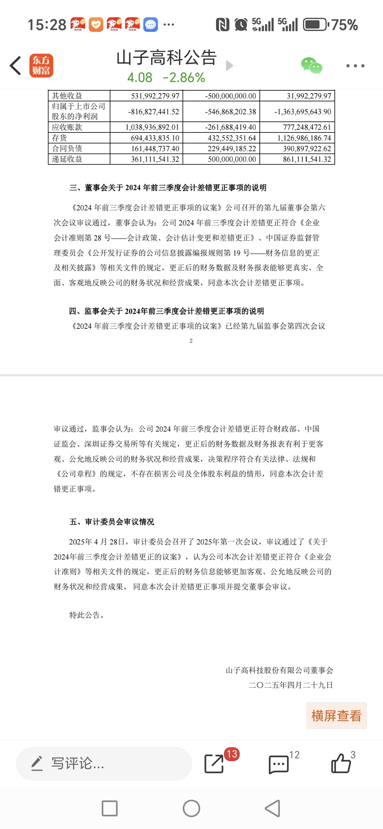 $山子高科(SZ000981)$ 那些说财务造假的喷子!自己在公告里面好好翻一翻。4月29号的公告!公司早就公告过,并且更正过!唯一的问题就是回购没有完成!所以关键问题就看公司如何处理回购未完成这个问题!