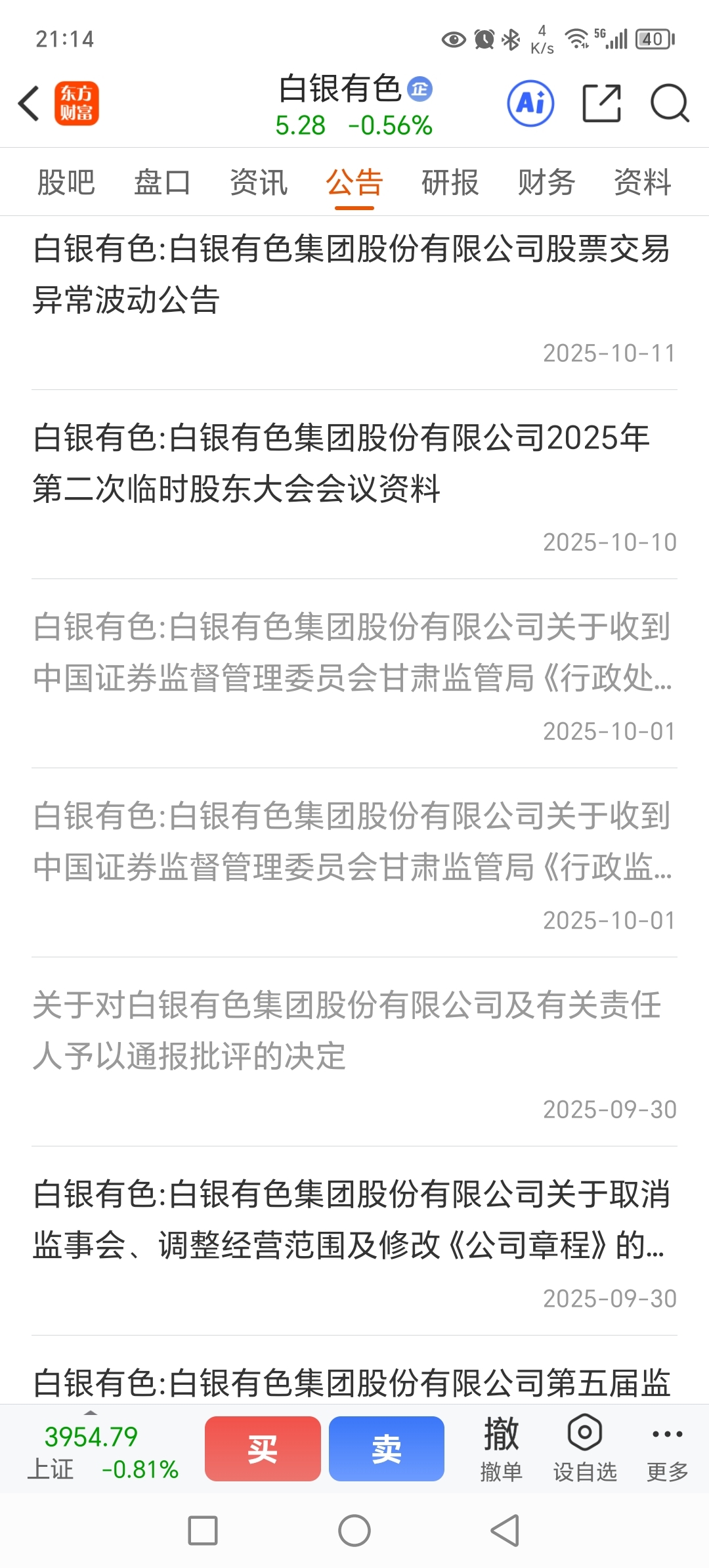 $山子高科(SZ000981)$ 白银有色收到甘肃警示涵,连续几个涨停,突飞猛进,拍怕什么,本来就是从从容容游刃有余,没出息