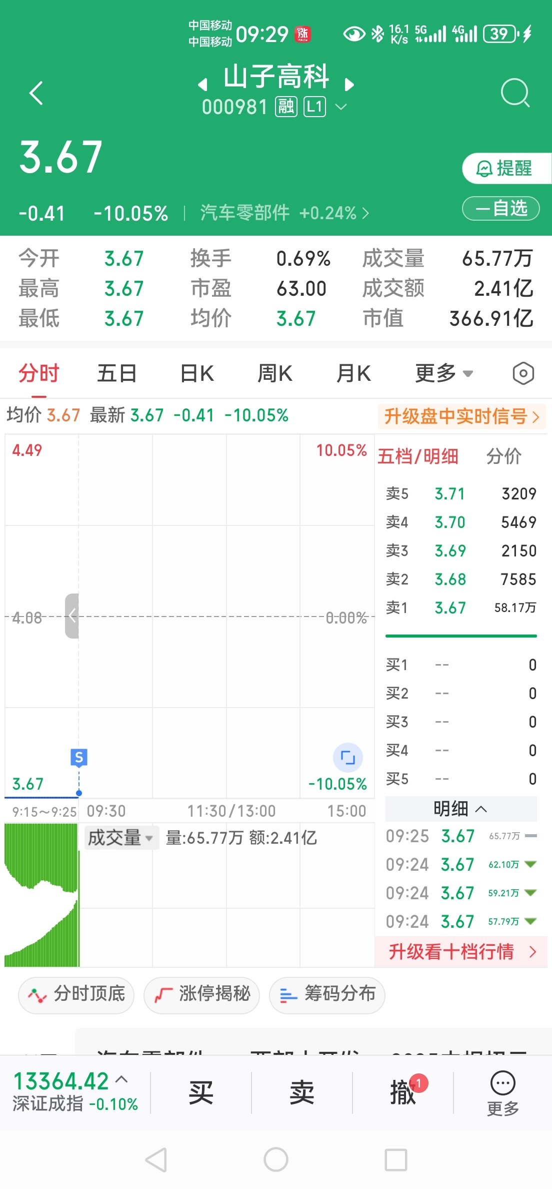 $山子高科(SZ000981)$ 挂单居然卖出去了,难道要地天?
