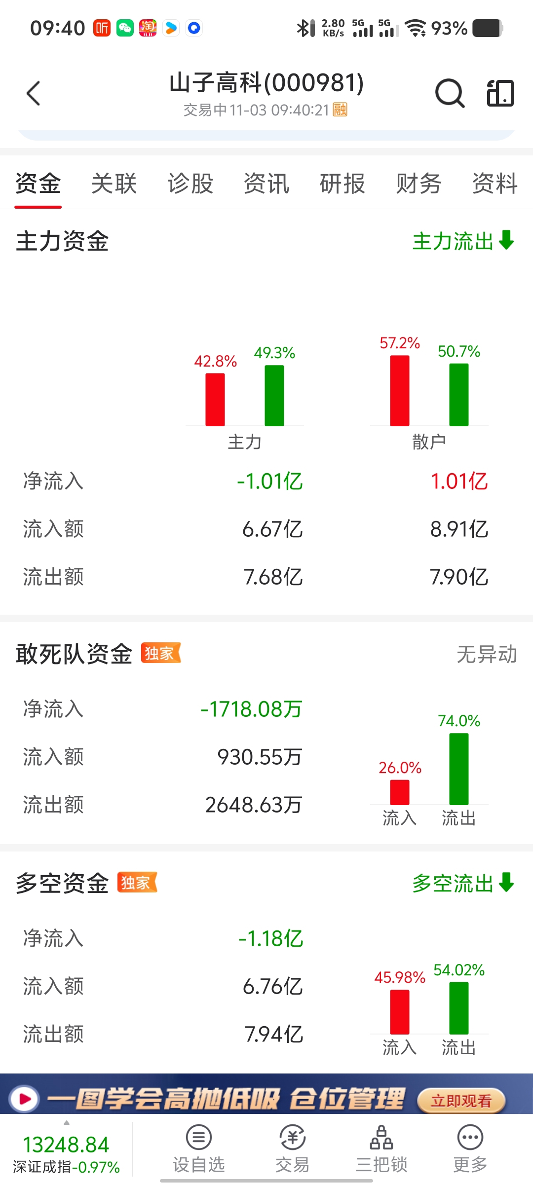 $山子高科(SZ000981)$ 每个人都在秒底 主力大手出货下午全是散户了