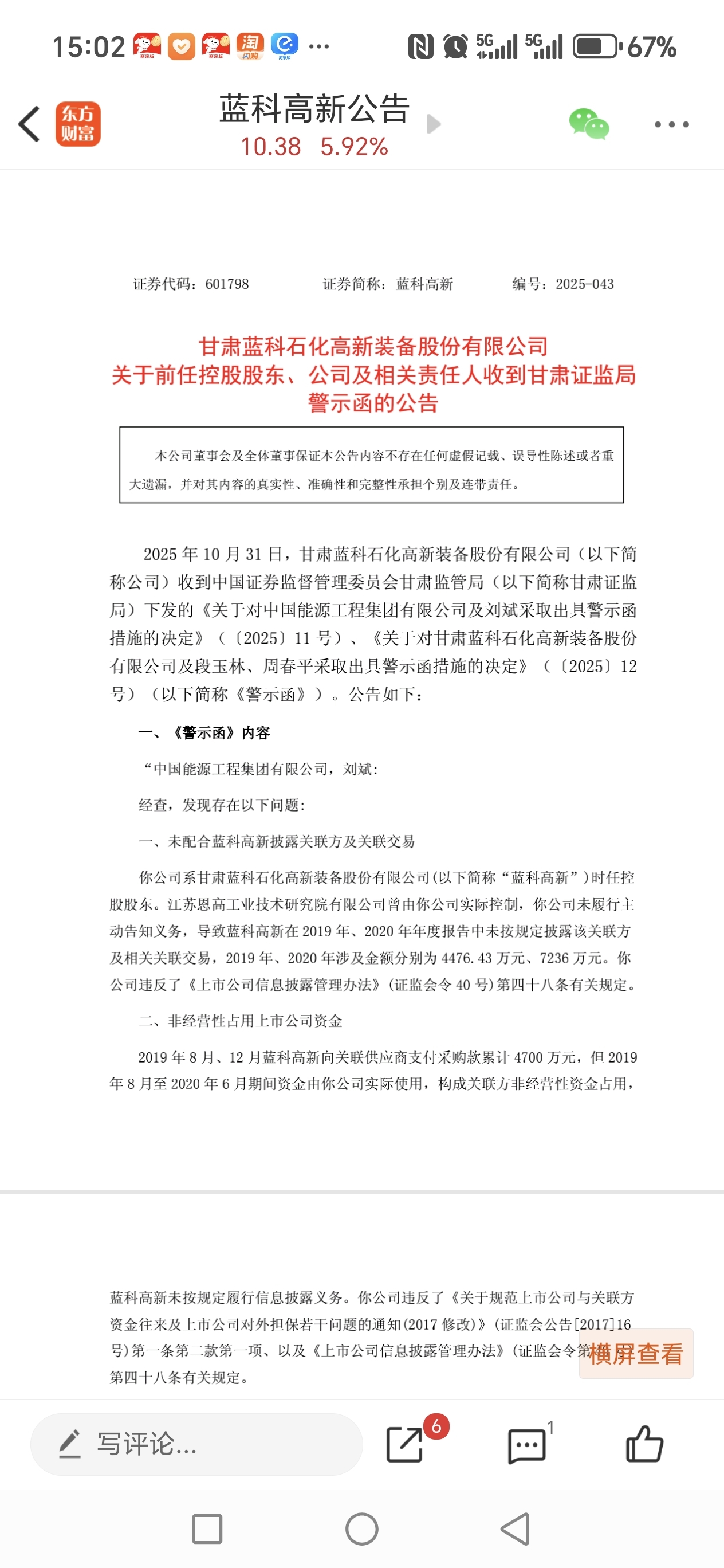和蓝科高新同一天收的警示函!看看别人今天红六个点