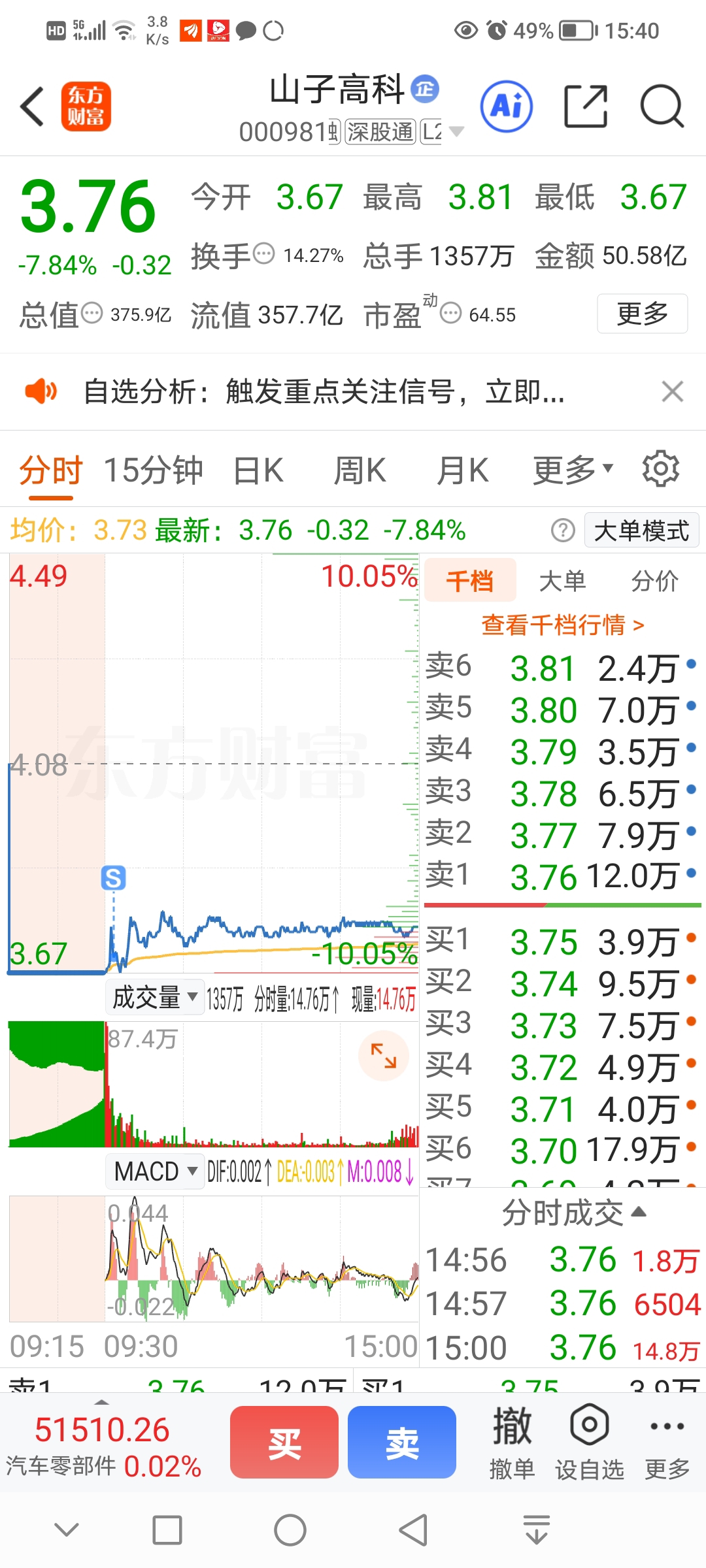 $山子高科(SZ000981)$ 把31手底仓都给你啦,,消化一下情绪,看能否到3.57~3.50重新建仓,如撑不住加仓位3.40~3.20,,,