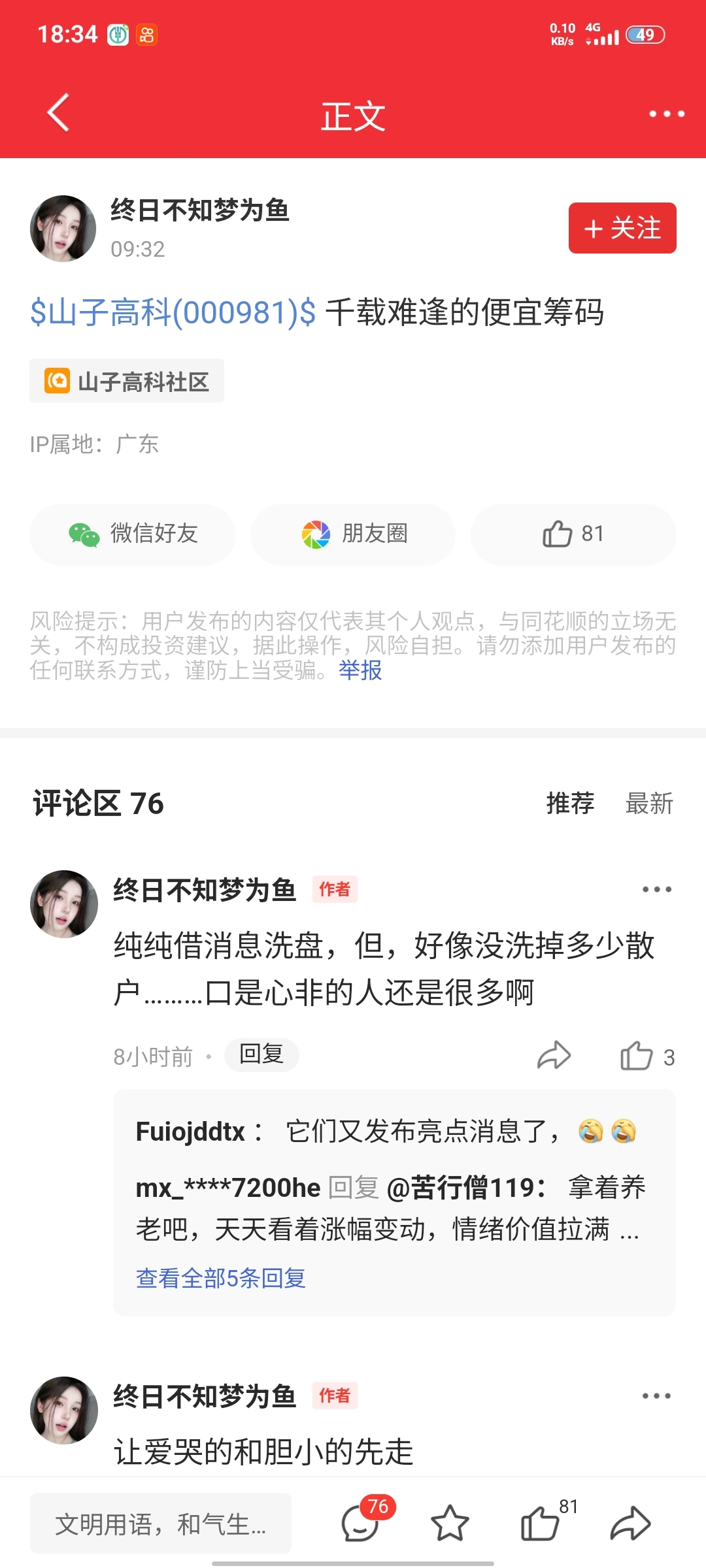 $山子高科(SZ000981)$ 这人是被套了多少在山顶,天天发帖忽悠人