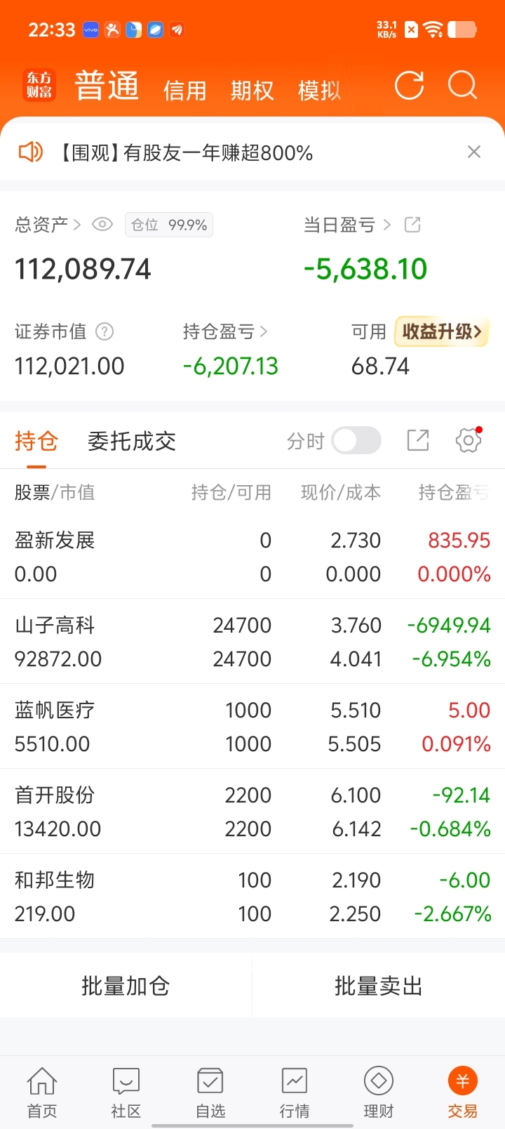 忍住了没割,早上9.30的时候内心驱使着我,让我加仓,加仓3300股虽然不多,但