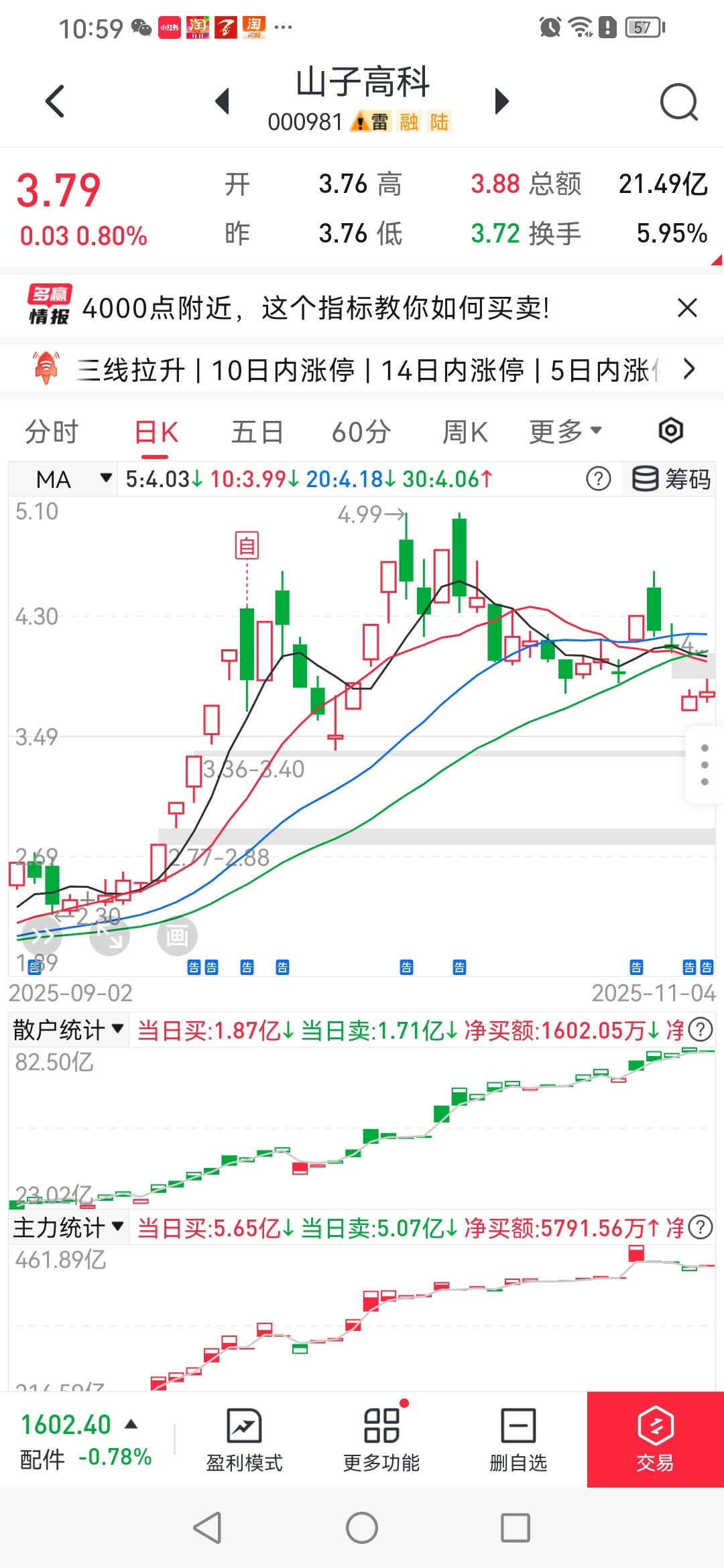 $山子高科(SZ000981)$ 散户T+0后,能二次抛货,领导性量化能二次吃货,才能上涨。除此之外,没有任何量化可以突破T+1,因为有这个领导性专用量化存在,有很多人跟买跟卖的呀。人家不存在也许可以,既然人家存在,说明也合法的呀。。。只能走散户T+0这条道,能行的通!!对接中单吃货量化不是没有用,也有用!这个是拉升量化当然有用。