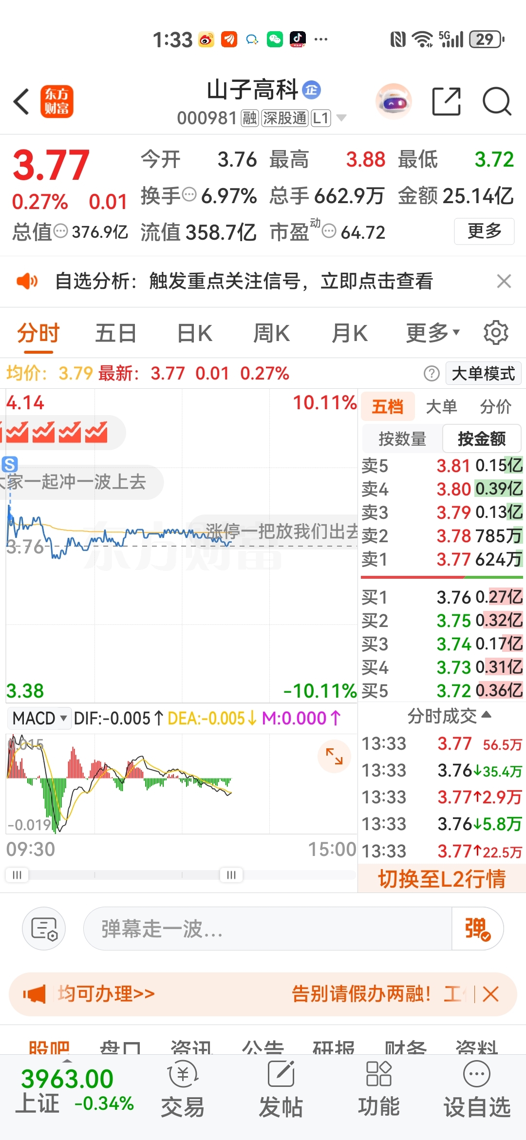 $山子高科(SZ000981)$ 涨停吧让我卖飞